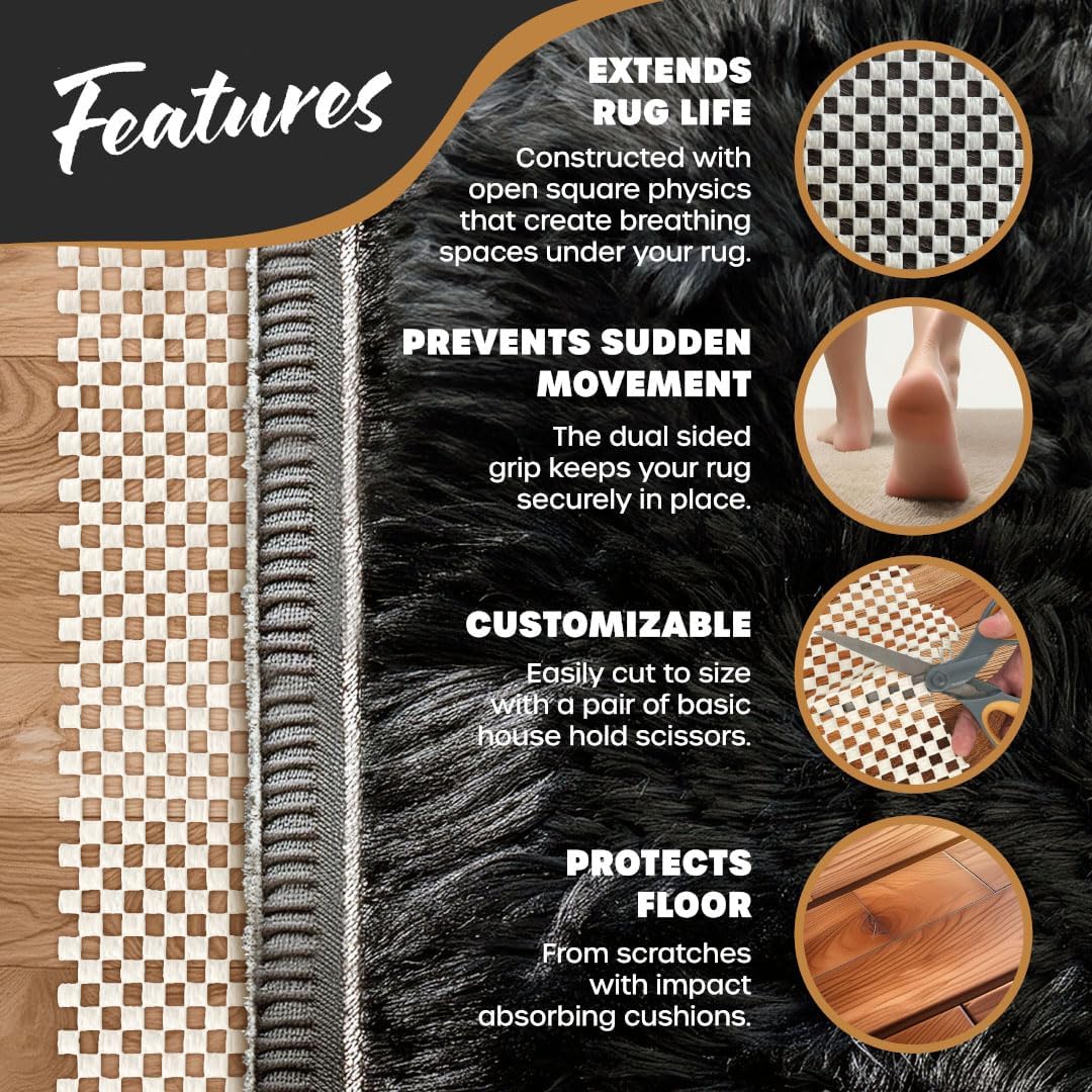 • All-in-One Protection, Cushion & Grip: Upgrade your space with the Nevlers Non Slip Rug Grippers ! Crafted from durable PVC, this no slip rug grip offers double the traction of the typical carpet gripper , eliminating the need for messy adhesives. The insulating design of the non slip rug pad absorbs sound, reducing the noise of footsteps. Ideal rug stoppers to prevent sliding for workout spaces or homes with kids, these rug grips will keep your rug in place & can even help extend its lifespan!
