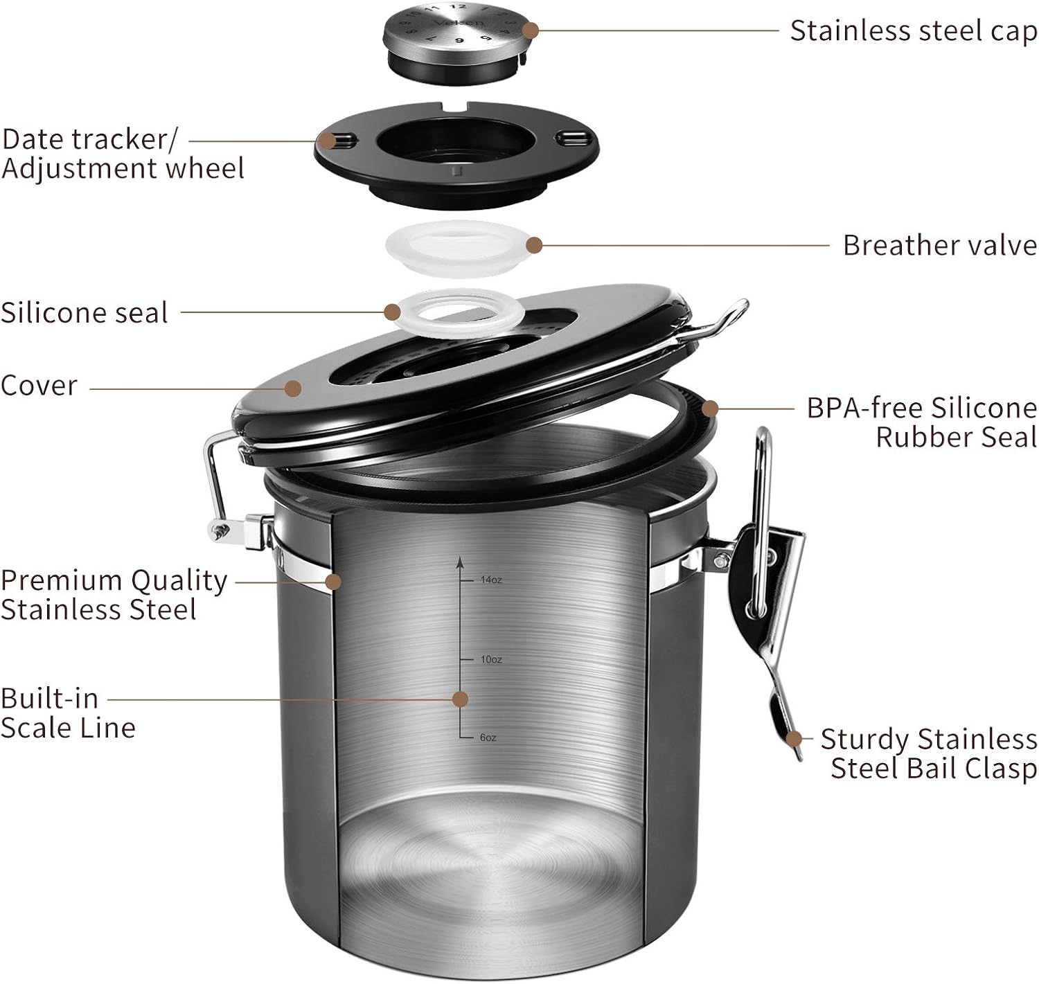 • 304 Stainless Steel - As a coffee lover, you must never compromise on the material and quality of your coffee container. Veken containers are made of thick, high quality stainless steel to create a comfortable environment for coffee beans.