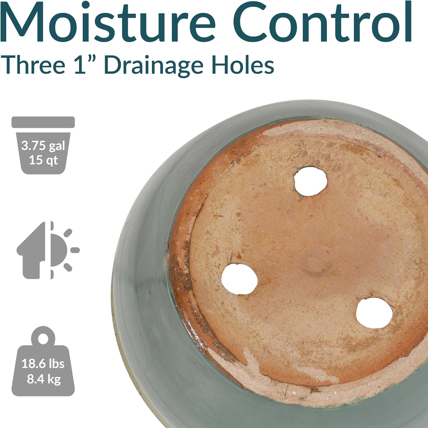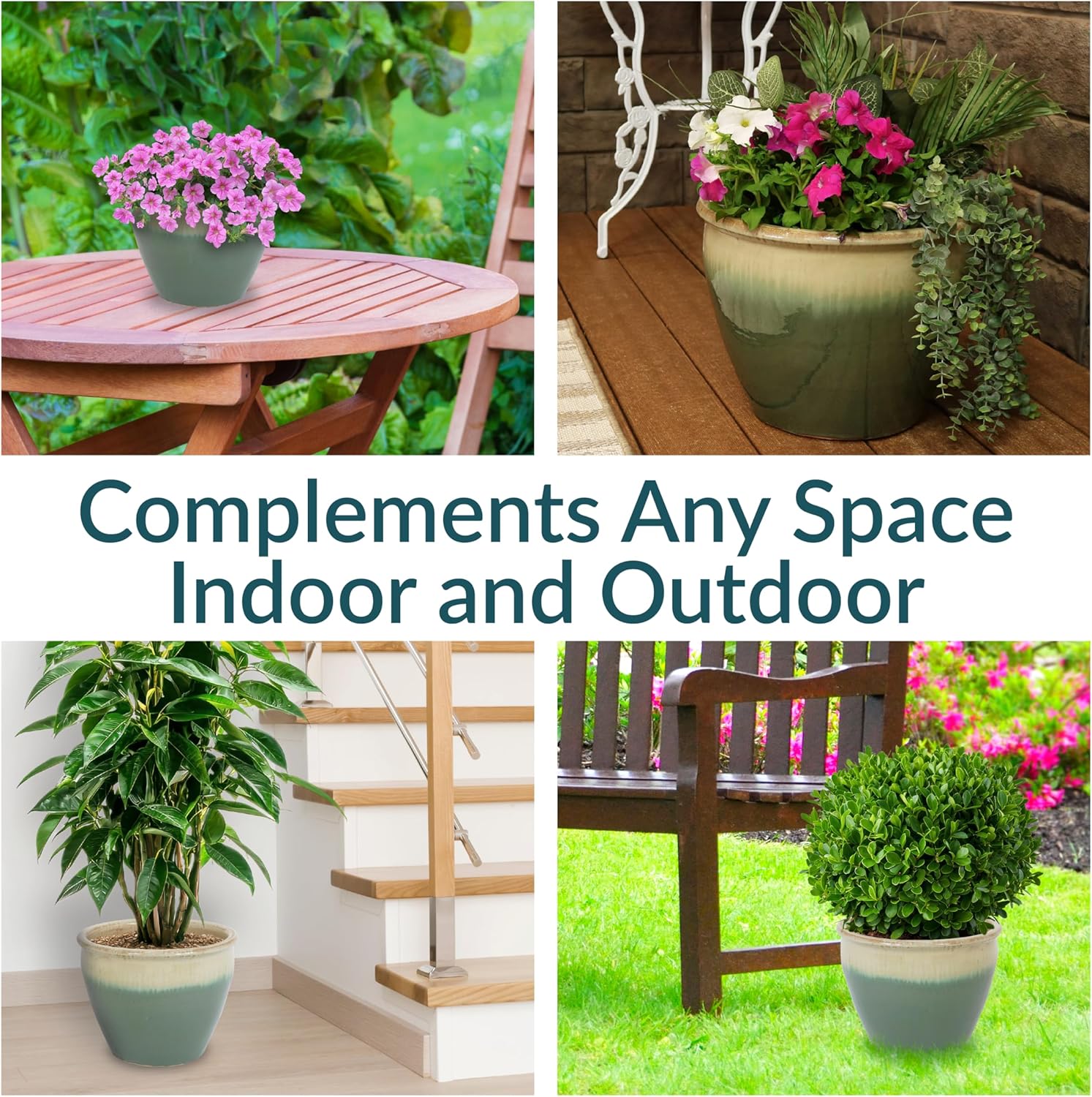 • DESIGNED FOR BEAUTY AND DURABILITY: This outdoor plant pot is crafted with a rich, hand-painted glazed finish that is kiln-fired for a classic, shining appearance. Subtle variations in color highlight the artisanal glazing process, making each piece truly unique. The durable ceramic construction offers natural UV and frost resistance, while its heavy weight adds stability to outdoor arrangements, keeping the planter upright in windy conditions.