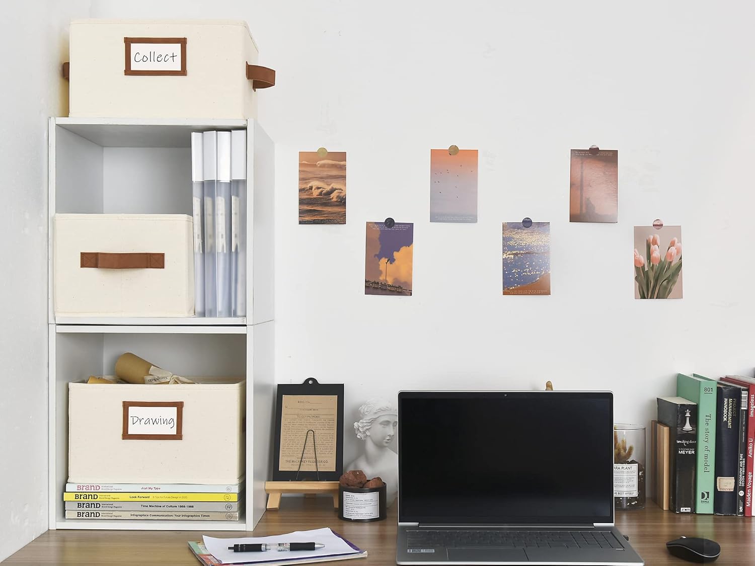 • The natural canvas fabric and the inserted heavy-duty boards of the storage bins allow them to support a weight of up to 30 pounds.