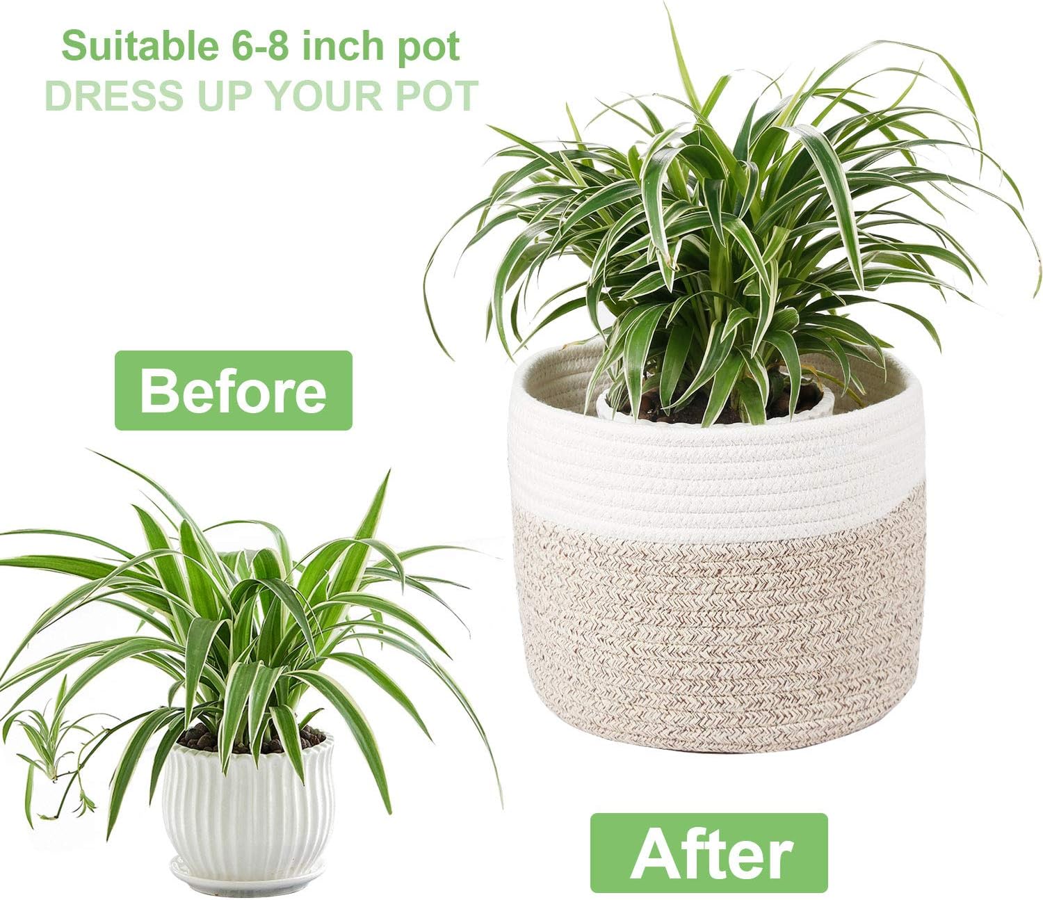 • 🌻【FITS 6"-8" PLANT POT】BEST fit 8" pot, If your favorite plants are using ordinary plastic flower pots, ceramic planter or grow bags, cotton rope pot covers will provide unique charm