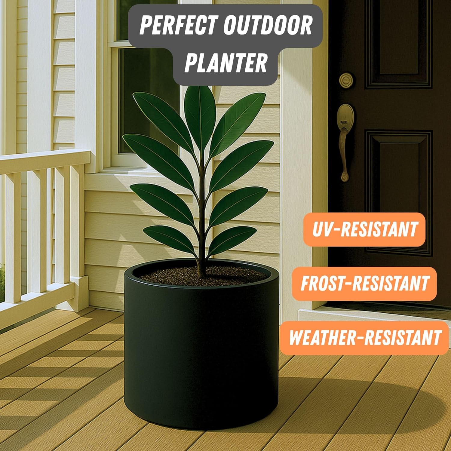 Fox & Fern 14.6 Inch Extra Large Planter — Premium Lightweight Fiberstone Matte Black Plant Pot with Drainage Plug; Big Planter for Indoor & Outdoor Use; Weather Resistant & UV Resistant