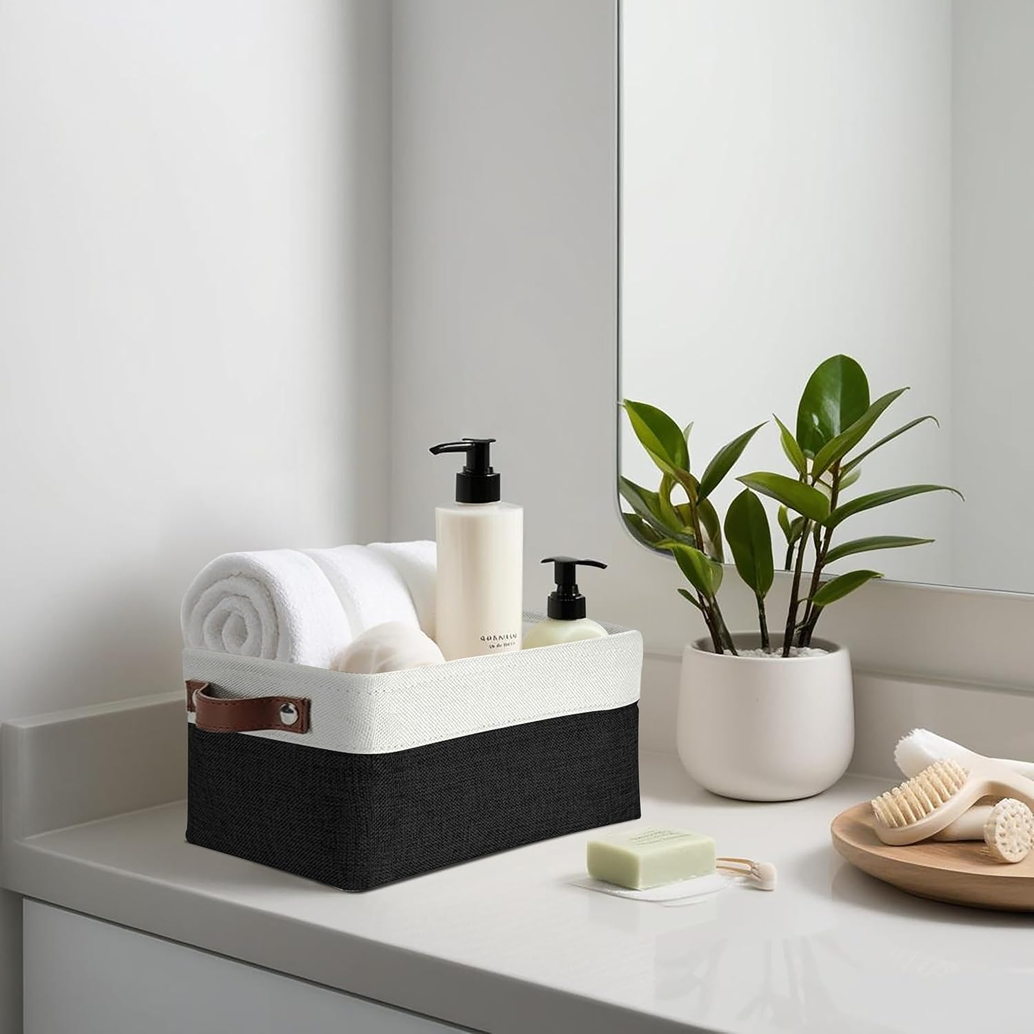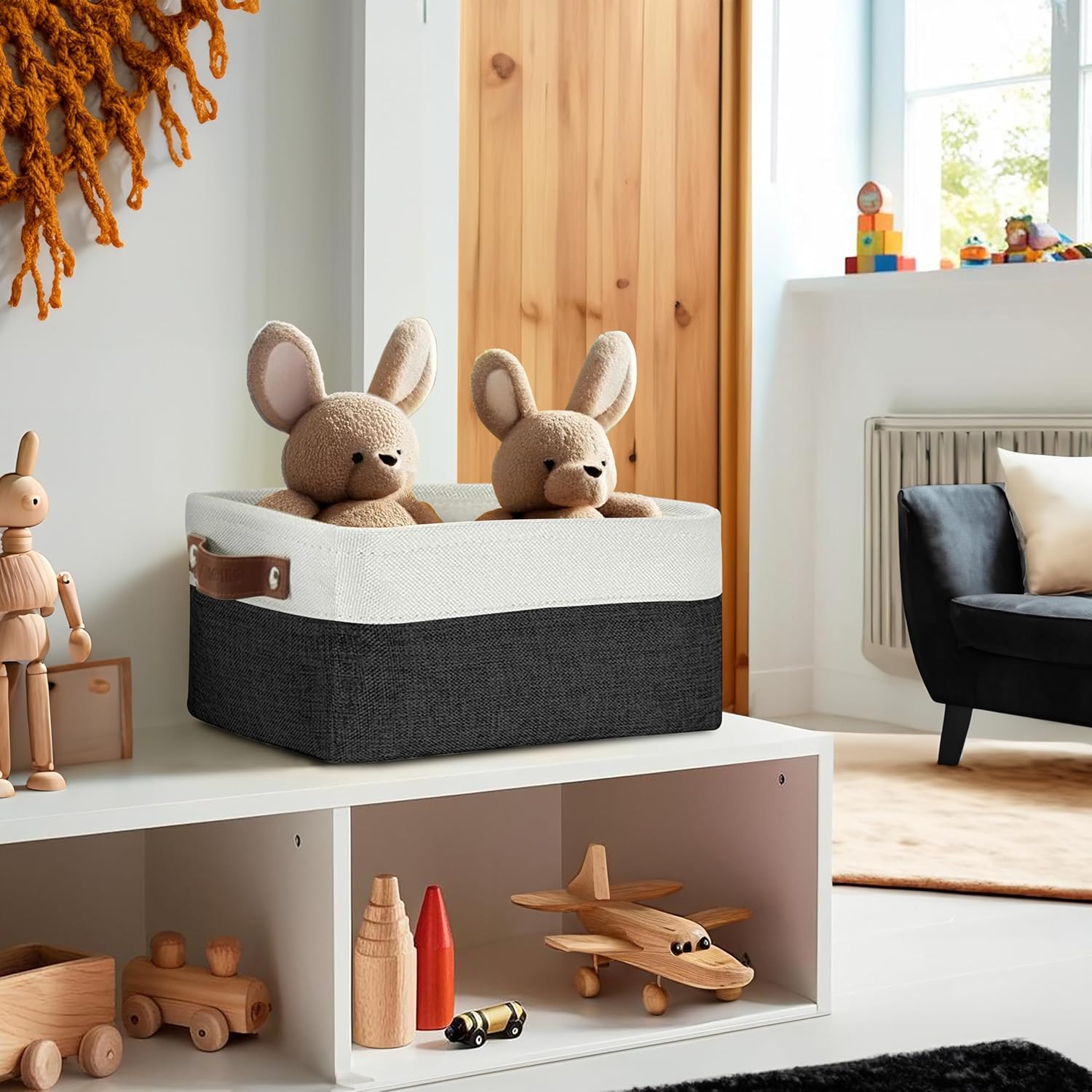 • Durable Design: DECOMOMO's baskets feature a sturdy metal frame, extra thick EVA exterior, polyester interior, 2.5mm MDF fiberboard bottom, and faux leather handles capable of holding up to 15 lbs.