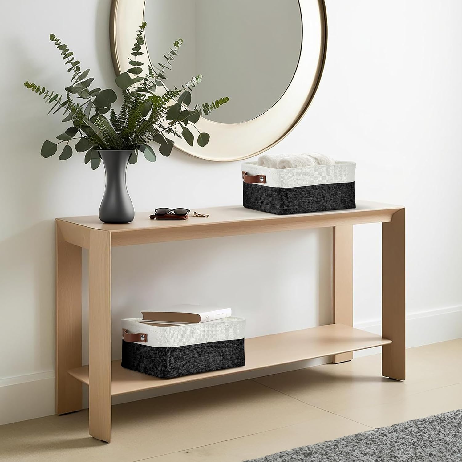 DECOMOMO Small Storage Basket, Closet Storage Bins, Baskets for Organizing Shelves (Black & White, Small - 6 Pack)
