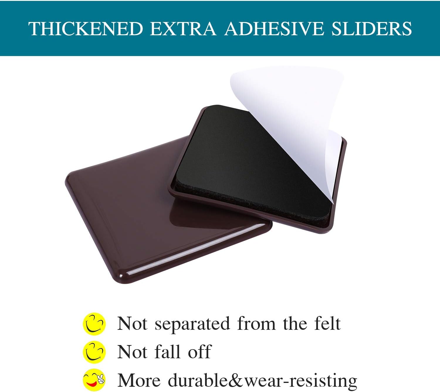 • ☛【Package Includes】- (16 Pack) 2.5 inch square reusable self-adhesive furniture moving sliders, Brown.