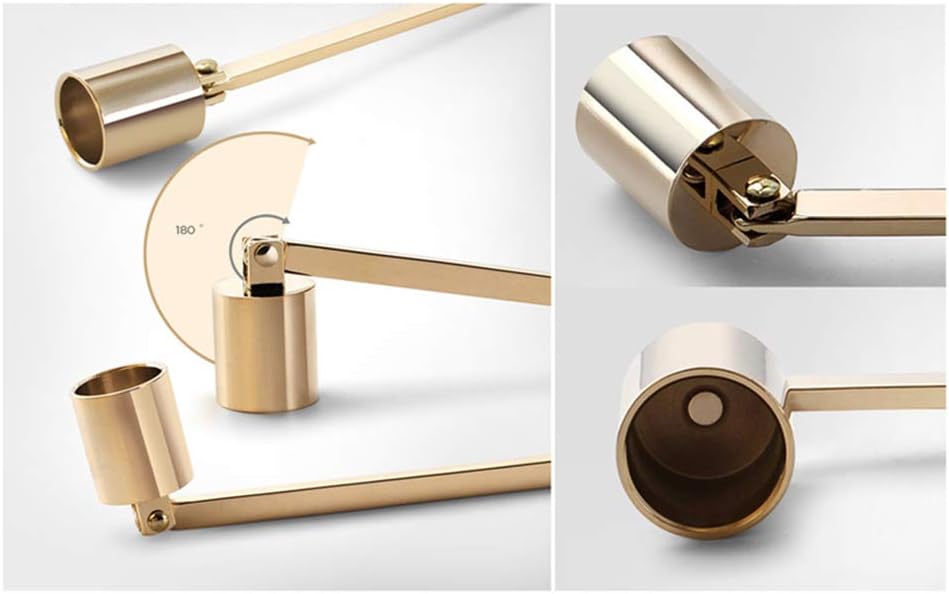• EASY TO USE : Long handle to extinguish wicks and prevent spray of wax or burns. You can hold the candlesnuffers just above the candle flame to snuff it out, the wide rotating head is easy to reach candles from multiple angle
