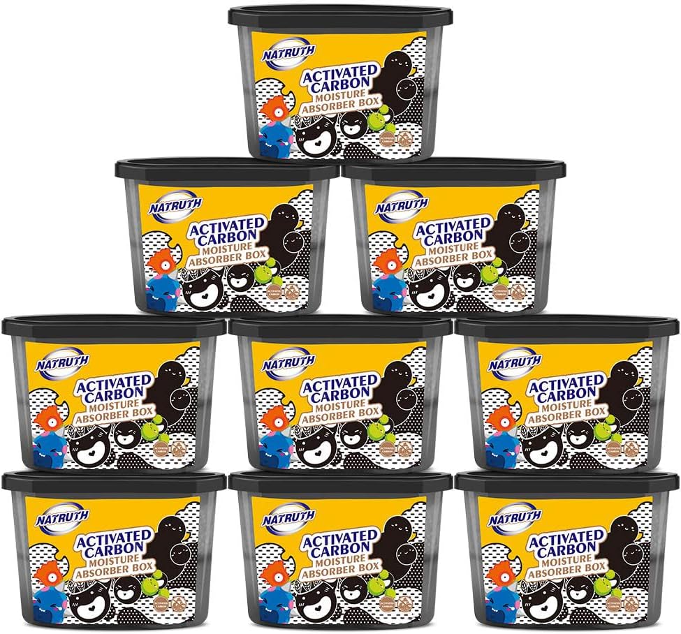 • 【EFFECTIVE DEHUMIDIFICATION】The NATRUTH moisture absorber box with Activated Charcoal effectively absorb extra moisture from the air and trap the moisture in box. This product features a large capacity of 8.11 oz globular calcium chloride particles inside moisture absorber could efficiently enlarge the dehumidifying area and eliminate unpleasant smell as an air fresher, keeping the place comfortable for a longer time