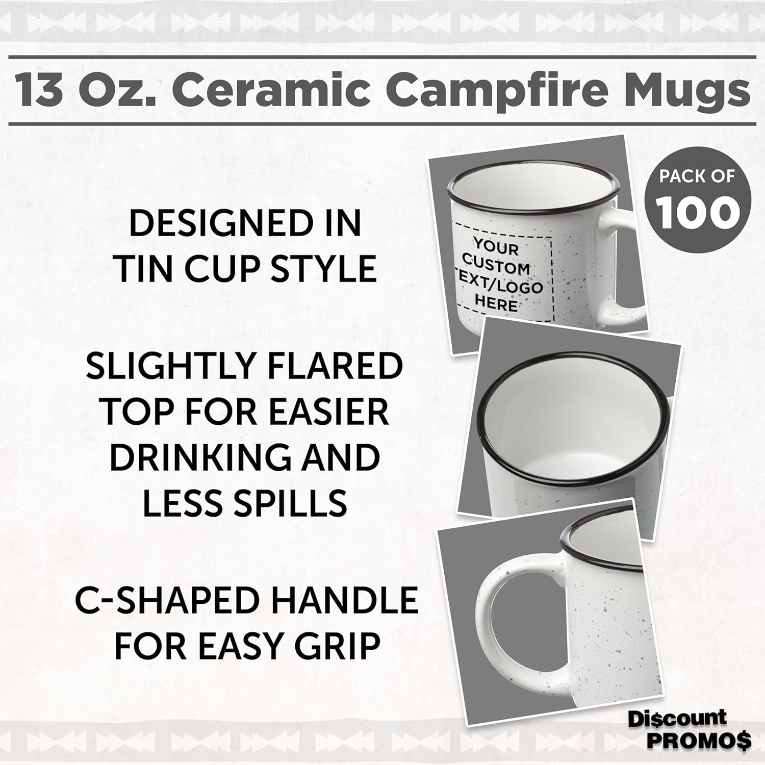 DISCOUNT PROMOS Custom Ceramic Campfire Coffee Mugs 13 oz. Set of 100, Personalized Bulk Pack - Perfect for Tea, Espresso, Cappuccino, Hot Cocoa - White