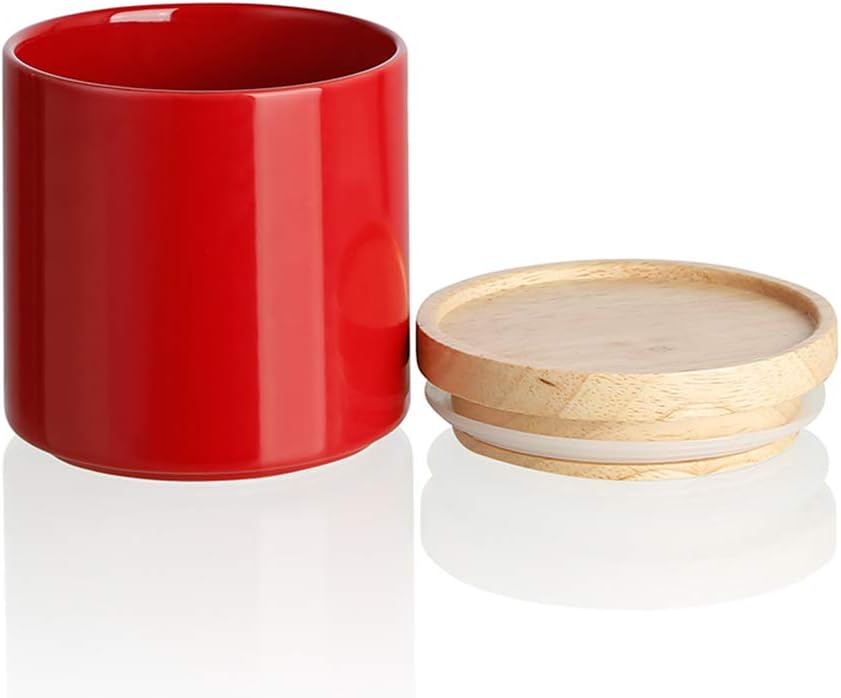 Sweejar Kitchen Canisters Ceramic Food Storage Jar, Stackable Containers with Airtight Seal Wooden Lid for Serving Ground Coffee, Tea, Sugar, Salt and More - 16 Fl Oz (Red)