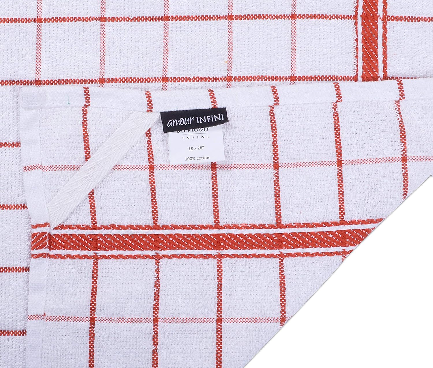 AMOUR INFINI Terry Cotton Kitchen Towels 4-Pack - Large 18 x 28 Inch, Absorbent & Soft Dish Towel with Hanging Loop, Washable Ideal for Cleaning, Drying (Rust)