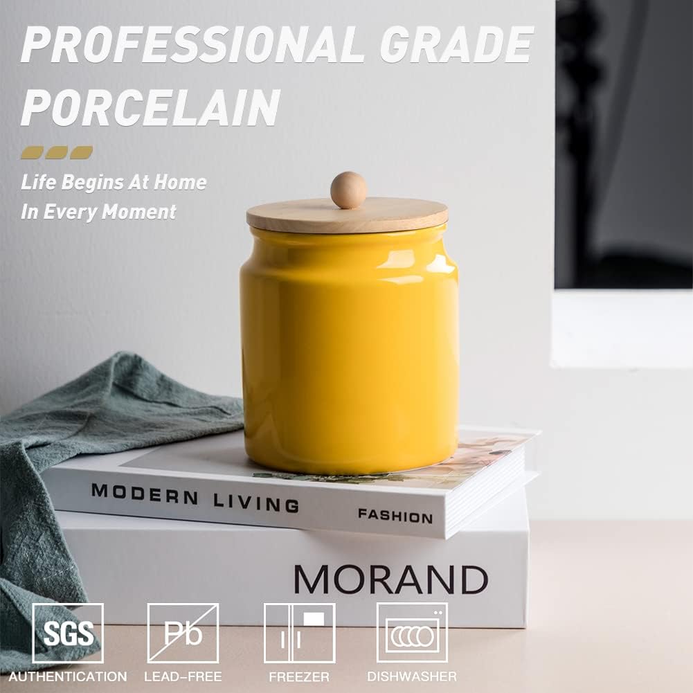 Sweejar Ceramic Kitchen Canisters, 28 FLOZ Porcelain Food Storage Jar with Airtight Seal Wooden Lid, Home Container Serving for Coffee Beans, Tea-leave, Sugar, Salt and More, Tool Bucket (Yellow)
