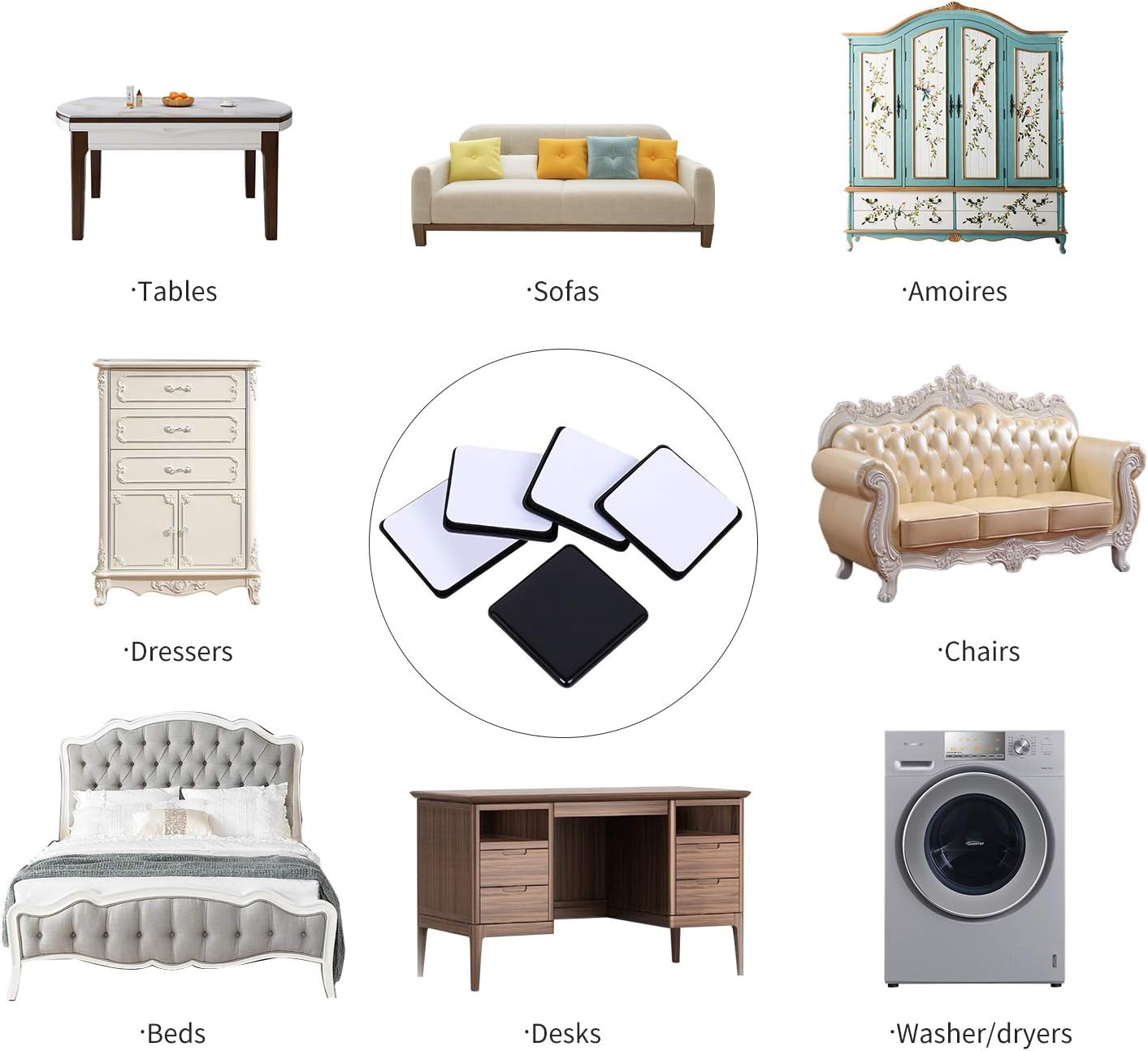 • ☛【Easy To Use】- 1)Please clean furniture legs & dry the surface. 2) Peel off the white protective cover form the furniture slider . 3) Stick to the furniture leg. 4) Wait 1 hour for max hold.