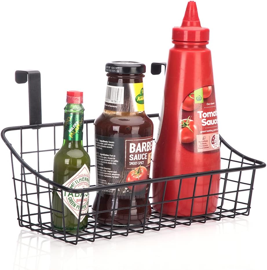 • VIEW ITEMS INSIDE WITH OPEN DESIGN: Open wire design allows you to see the items inside the basket, which makes it easy to find the ingredient, toy, scarf, or any other item you need. Keep your closets, pantry, kitchen cabinets, garage shelves and more organized without sacrificing easy access,Over Cabinet Door Basket.