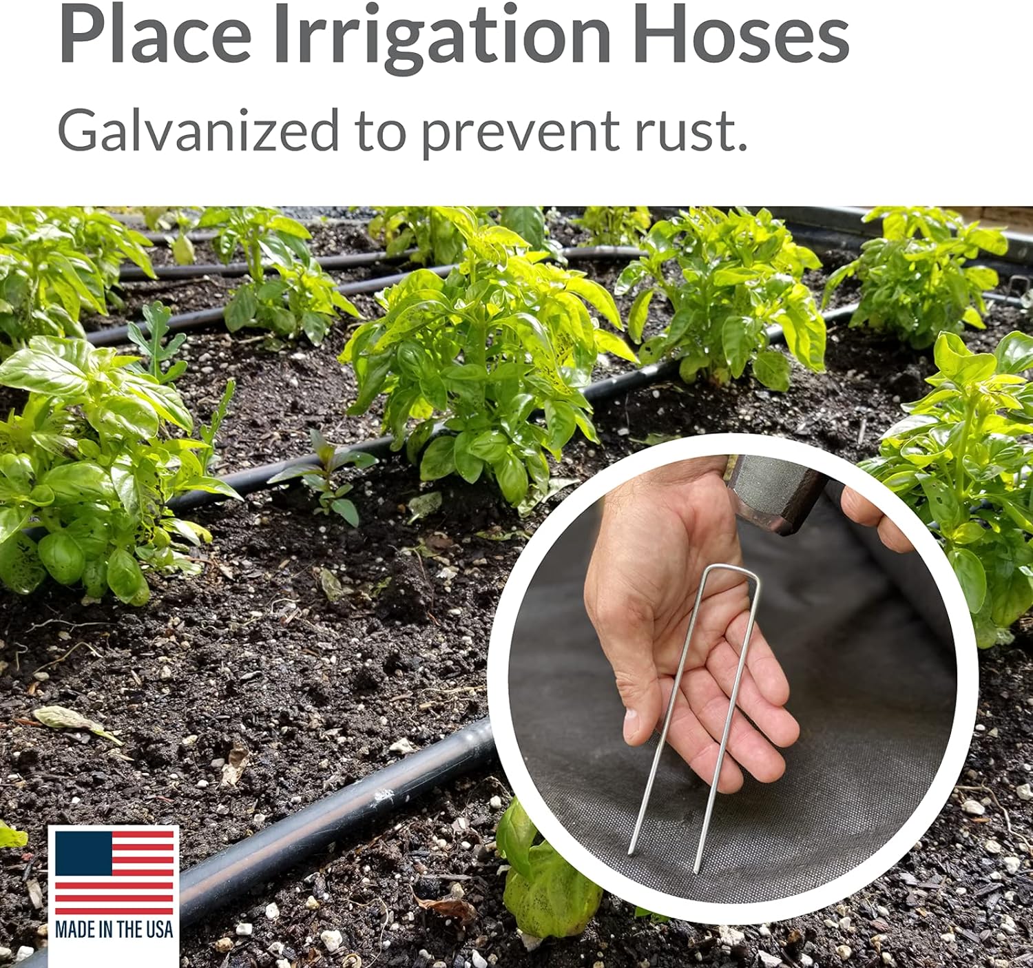 • SECURES BETTER: 6-inch length 1-inch square top. Sharp ends help penetrate weed barrier fabric
