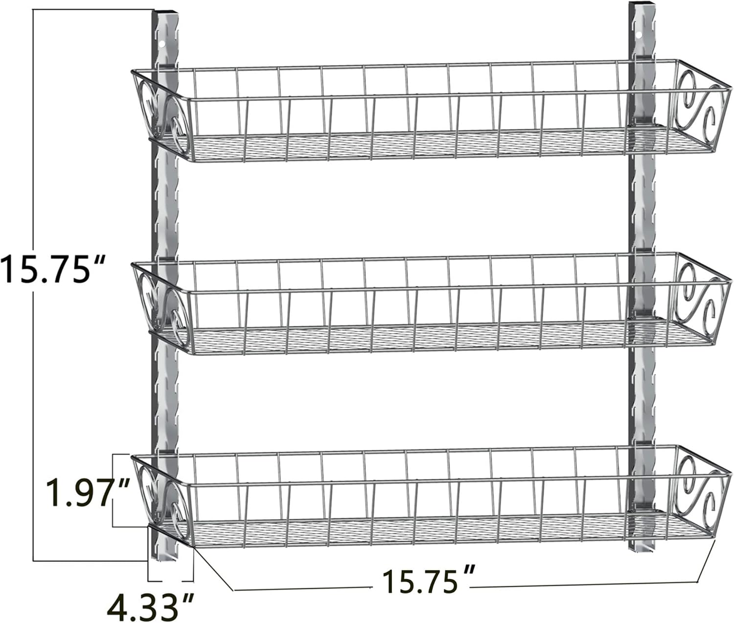 • Large-capacity Spice Rack for Wall: With the same wall area, provides twice as much storage space as traditional products. Wider basket bottom (4.33 inches) for more items, Like large bottles, spice jars, seasonings, cans, food storage containers and more.