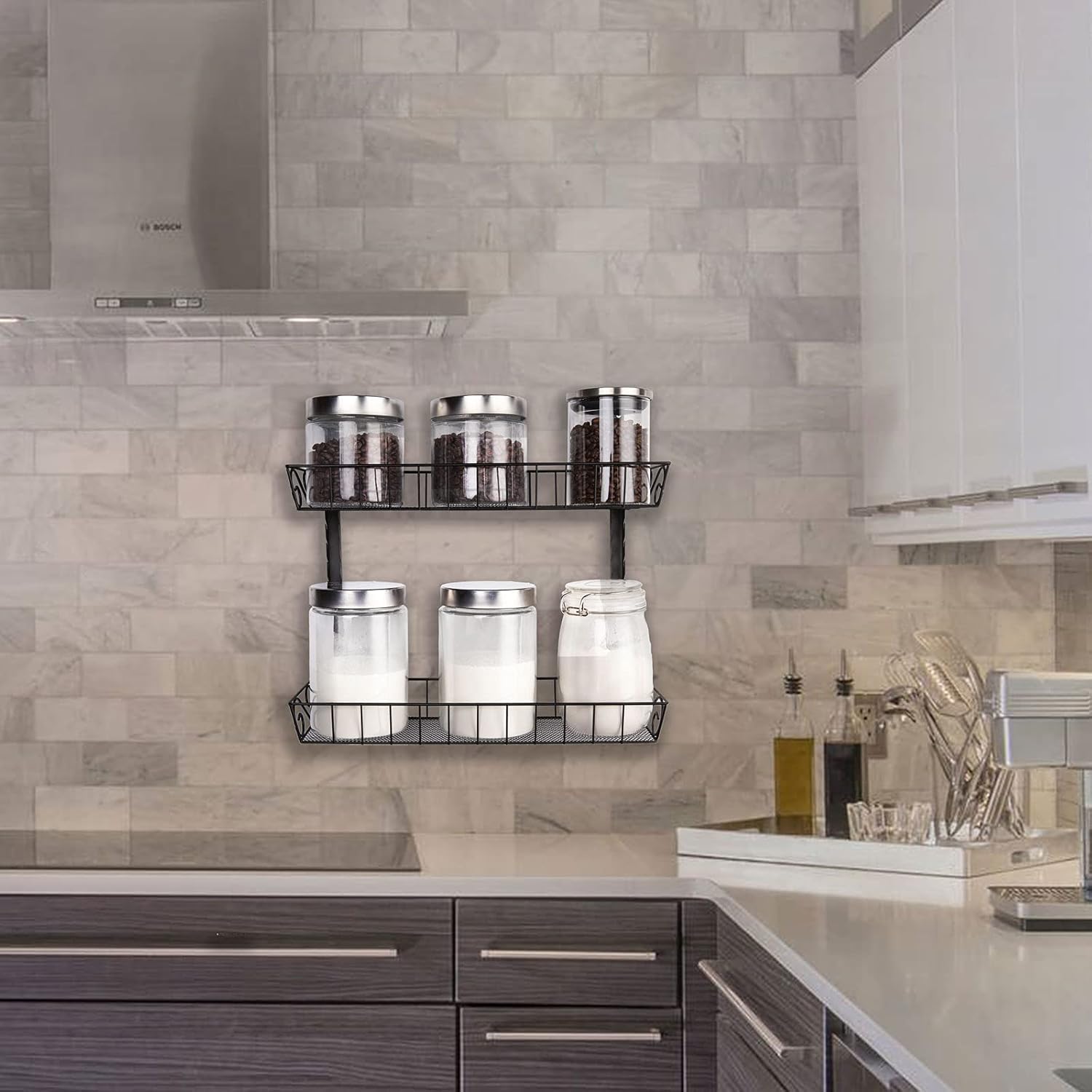 SWOMMOLY Adjustable Wall Mount Spice Rack, 3-Tier Dual-use (Multi-use) Organizer, Black