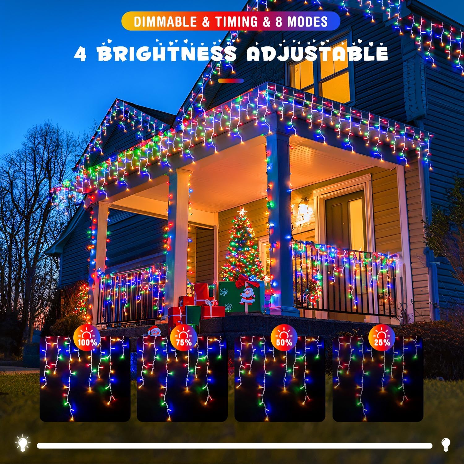 JMEXSUSS 800 LED Christmas Icicle Lights Outdoor Plug-in, Multicolor Waterproof, 8 Modes With 160 Drops for Bedroom House Holiday Party Decorations