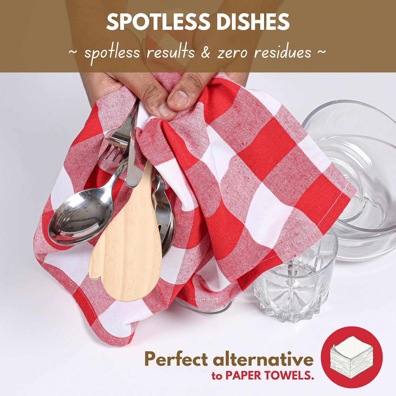 Native Fab 12-Pack Kitchen Towel with Hanging Loop 16x26 inches, Cotton Buffalo Check Kitchen Towels for Cleaning Drying, Washcloths Soft & Absorbent Cloth Rags, Bar Towel, Dish Cloth, Red