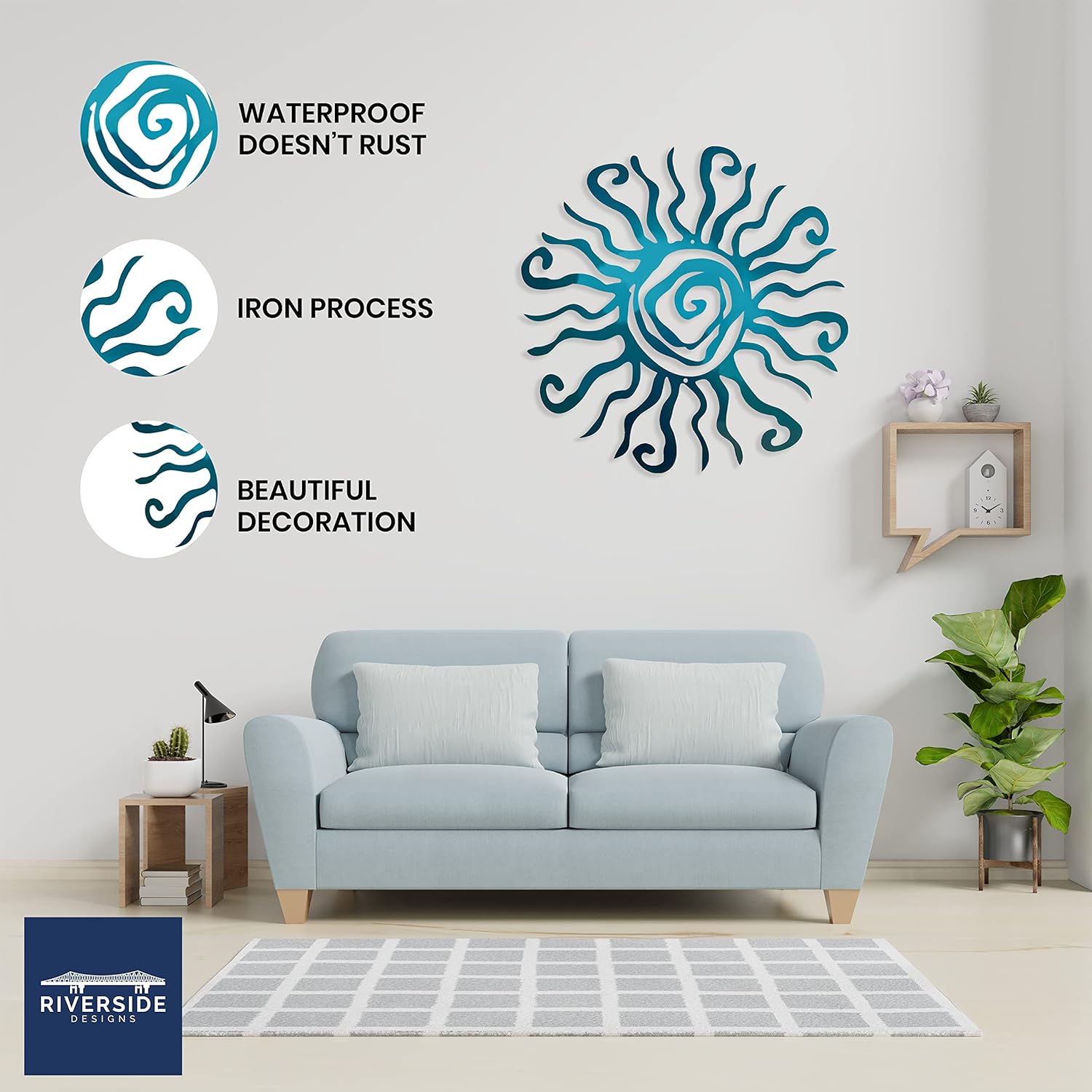 Riverside Designs Wacky Sun Metal Wall Art Indoor/Outdoor Decor - 12" Teal Rust Proof Wall Sculpture - Made in USA - Ideal for Bedroom, Garden, Home, Patio and Farmhouse