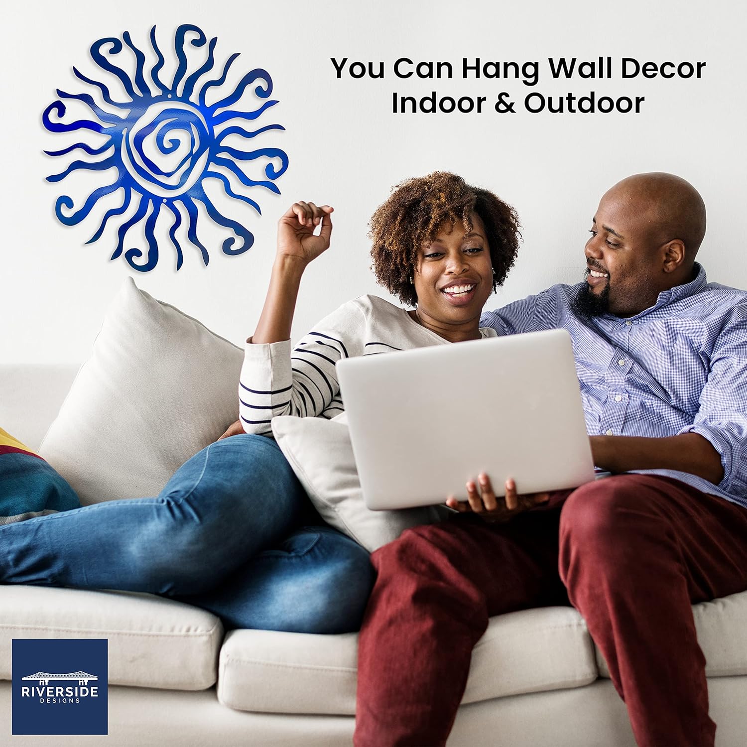 Riverside Designs Wacky Sun Metal Wall Art Indoor/Outdoor Decor - 12" Blue, Rust Proof Wall Sculpture - Made in USA - Ideal for Bedroom, Garden, Home, Patio and Farmhouse