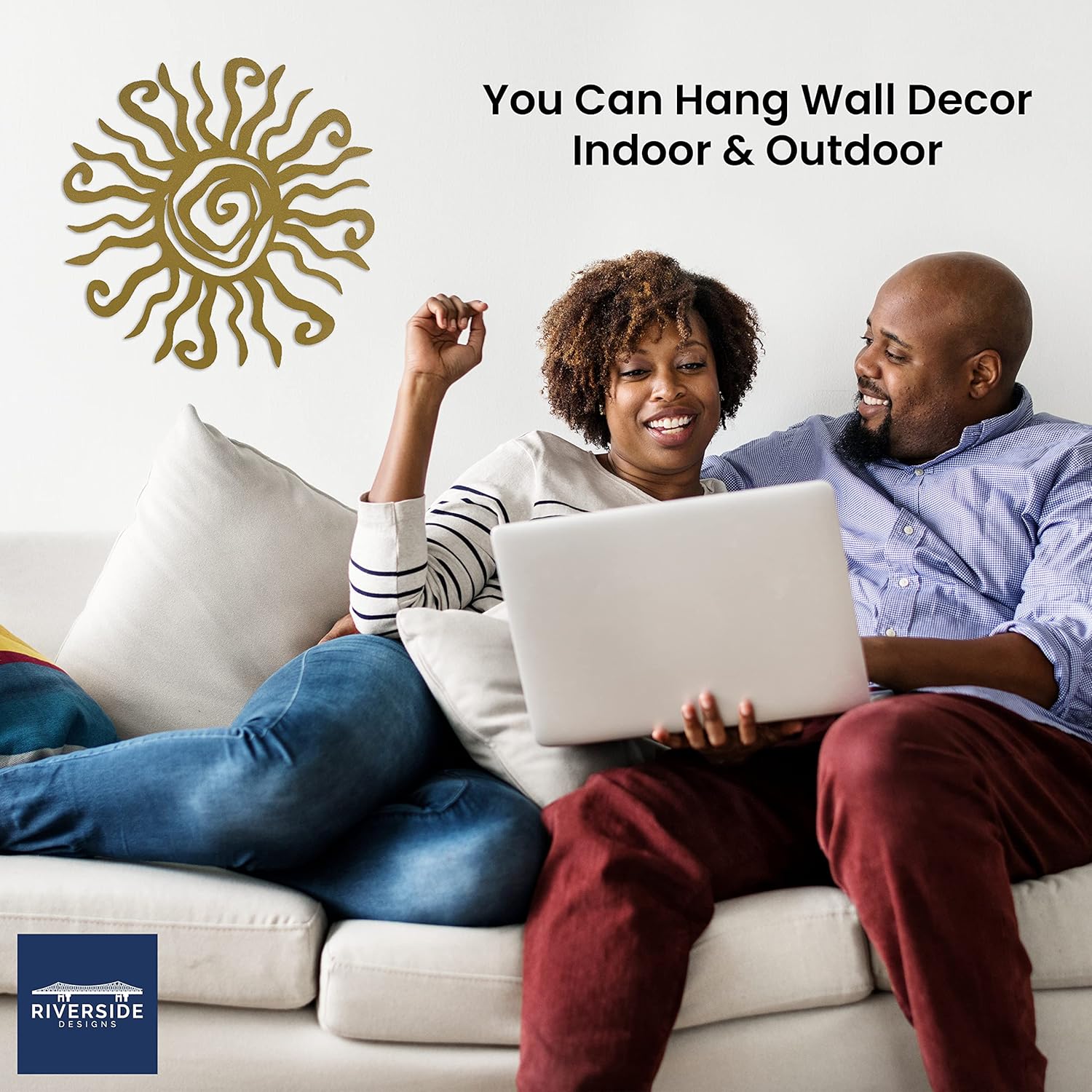 Riverside Designs Wacky Sun Metal Wall Art Indoor/Outdoor Decor - 30" Gold Rust Proof Wall Sculpture - Made in USA - Ideal for Bedroom, Garden, Home, Patio and Farmhouse