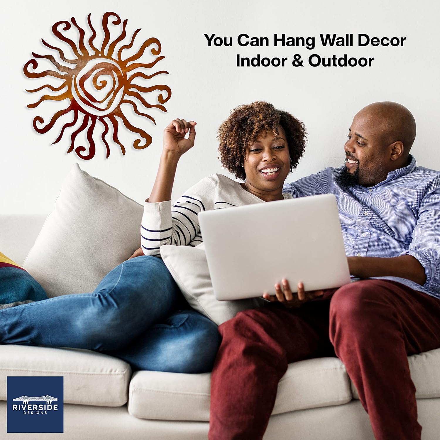 Riverside Designs Wacky Sun Metal Wall Art Indoor/Outdoor Decor - 30" Copper Rust Proof Wall Sculpture - Made in USA - Ideal for Bedroom, Garden, Home, Patio and Farmhouse