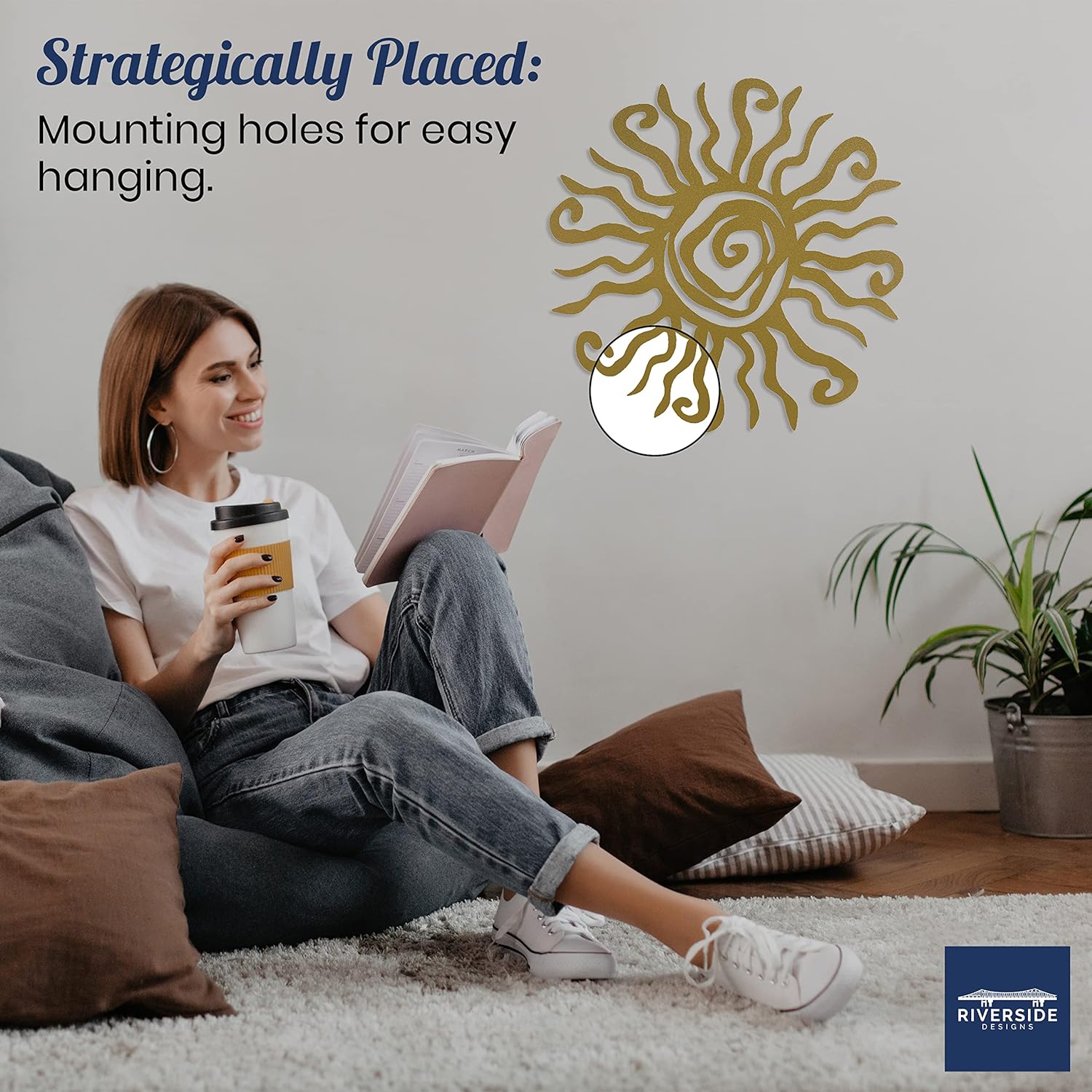 Riverside Designs Wacky Sun Metal Wall Art Indoor/Outdoor Decor - 36" Gold Rust Proof Wall Sculpture - Made in USA - Ideal for Bedroom, Garden, Home, Patio and Farmhouse