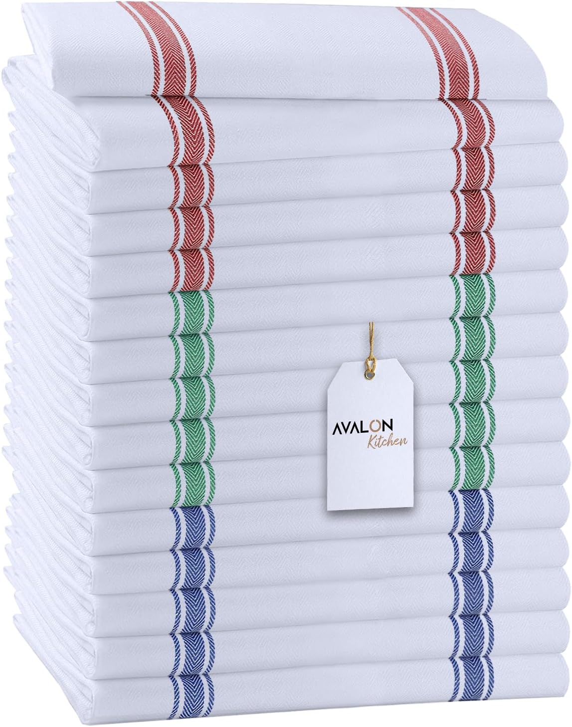 • SOFT AND ABSORBENT – These kitchen towels are made from 100% ring-spun cotton to assist with all your household and kitchen chores. The dish towels are carefully designed with a herringbone weave which gives a soft feel and absorbency to dry effectively.