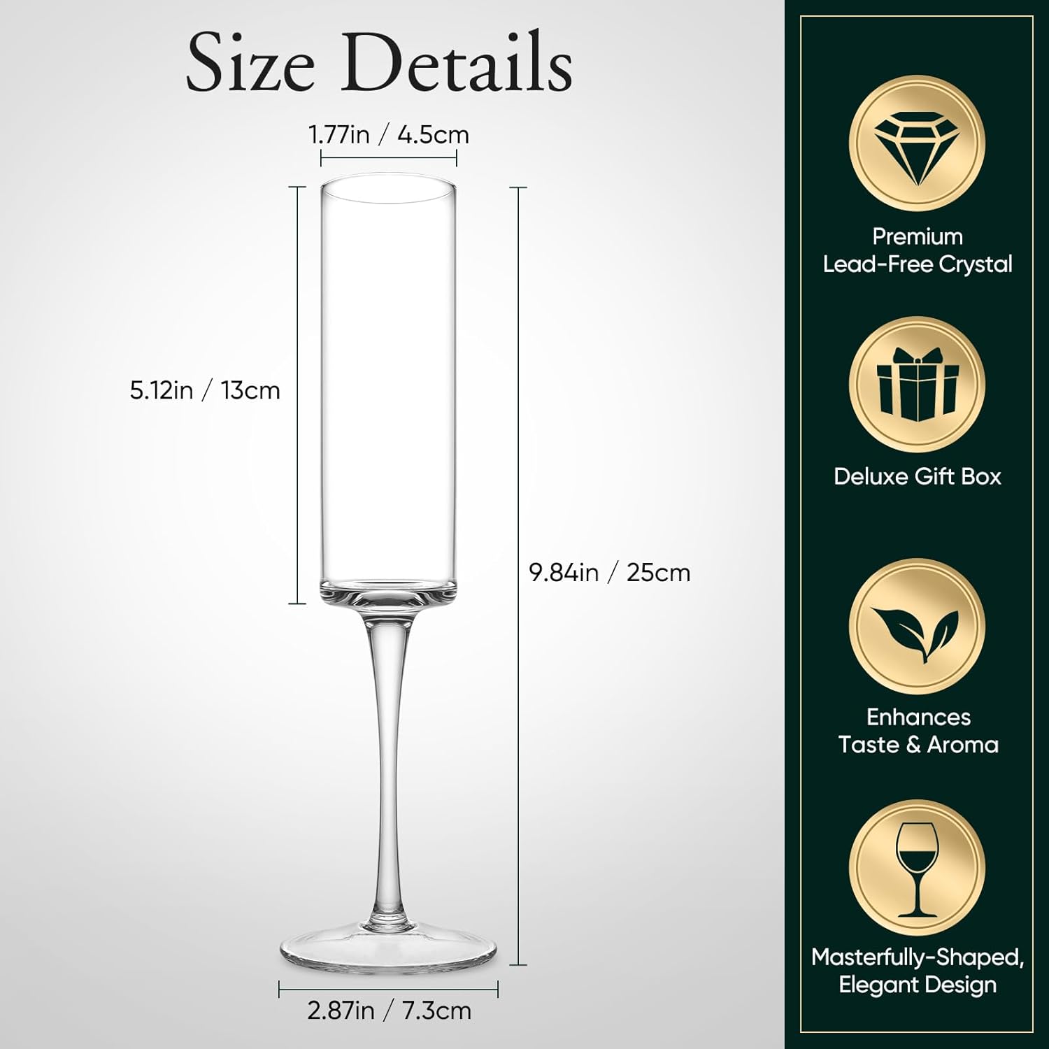 • Crystal Champagne Flutes: Celebrate with your family and friends with our wine & champagne glasses are made from lead free ultra-clarity crystal unlike crystal glasses which contain 25% lead. Get the sparkle and flair of fine crystal glass stemware, tempered for durability.