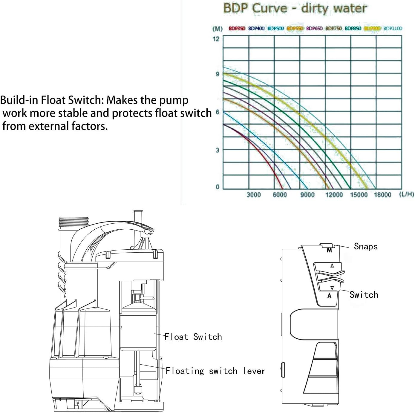 • Sealing Structure & Durable Construction: The sump pump features a durable sealing structure and the durable thermoplastic body keeps the pump from corrosion. The higher base plate which assures the prevention of debris collection in the sump pit
