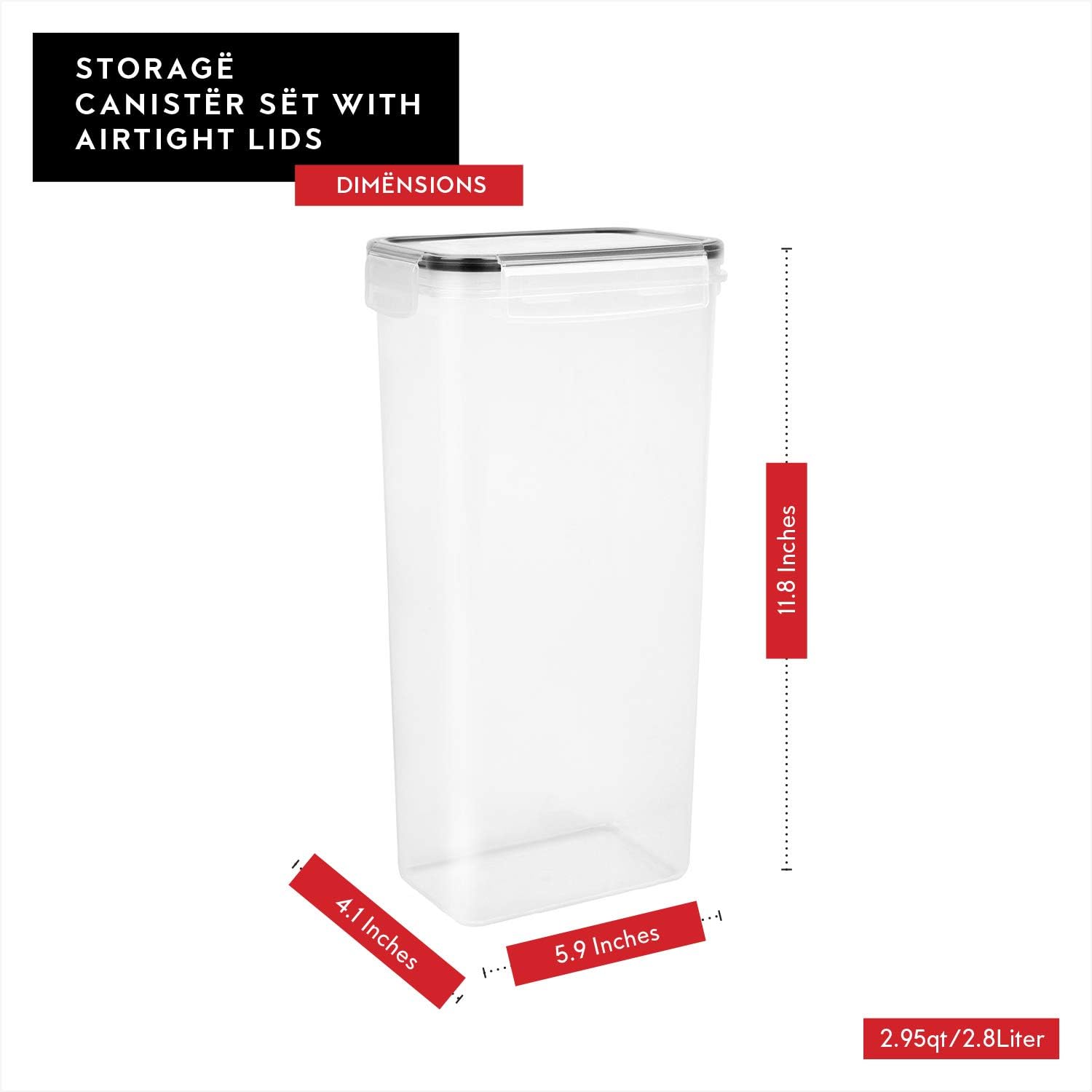 • Perfect For Pantry Organization: This container set includes 4 airtight containers (2.95 qt / 2.8 liters), which are perfect for storing Spaghetti, Noodles & Pasta it can also be stored baking supplies, oats, pasta, rice, flour, sugar, coffee, tea, snacks, nuts and even a small box of cereal, This set comes in a beautiful box which makes it an ideal gift for any friend or family.