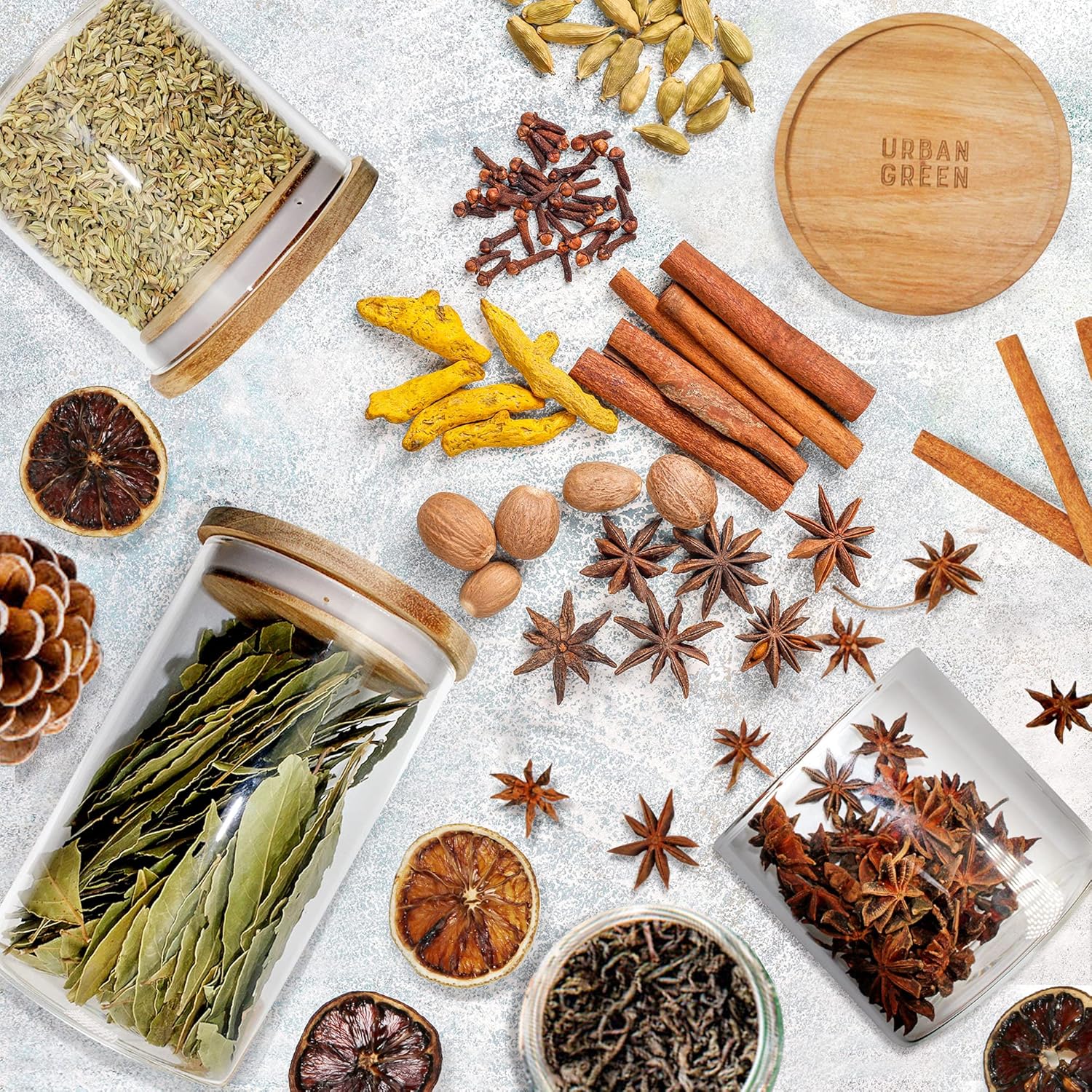 • ✅URBAN GREEN glass containers / Canisters are one time investment and lifetime of wear and team. User tips, Unlike Bamboo Lids, each piece of wood lid has its unique veins and colors, which is the beauty of the wood product.