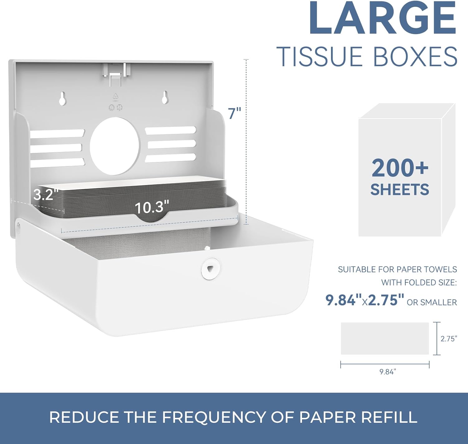 • Large Capacity -- our economical folded paper towel holder can hold up to 200 paper towels, which is very suitable for public places.