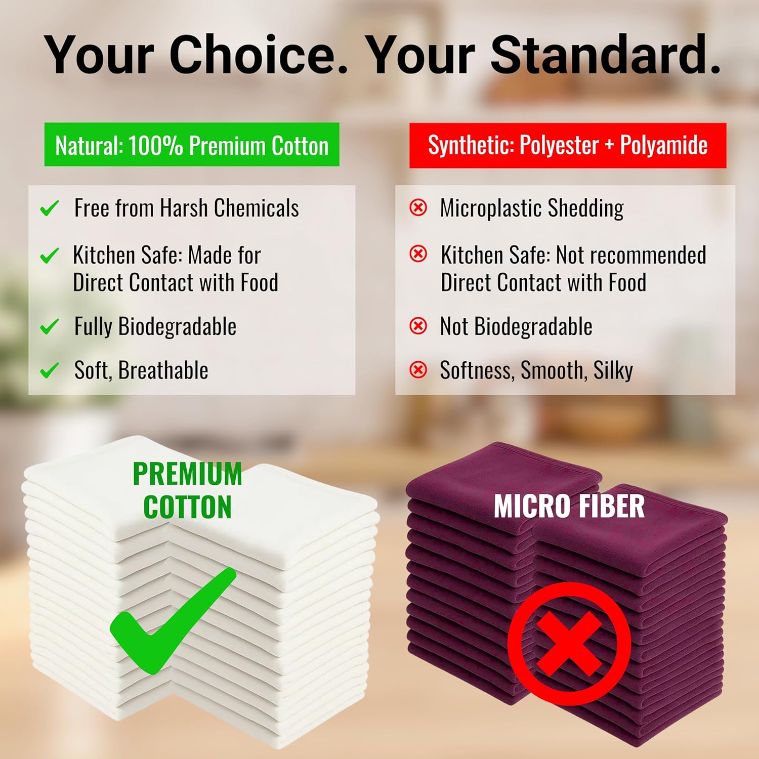 • MULTIPURPOSE: Their lint-free pure ring-spun cotton composition makes them perfect for drying glassware, hands and surfaces. Moreover, they excel at tasks like cheese straining, salad spinning, and even serving as reliable dough covers for baking.