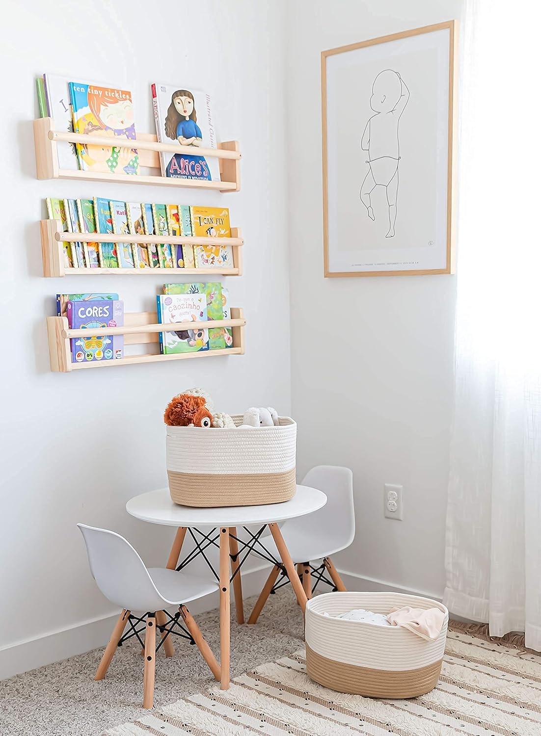 • Discrete, Built-In Carry Handles – These fabric rope baskets for storage also feature slim hand holds built right into the sides of each round basket for a seamless look that’s also functional. Perfect for picking up toys or carrying items around the house.