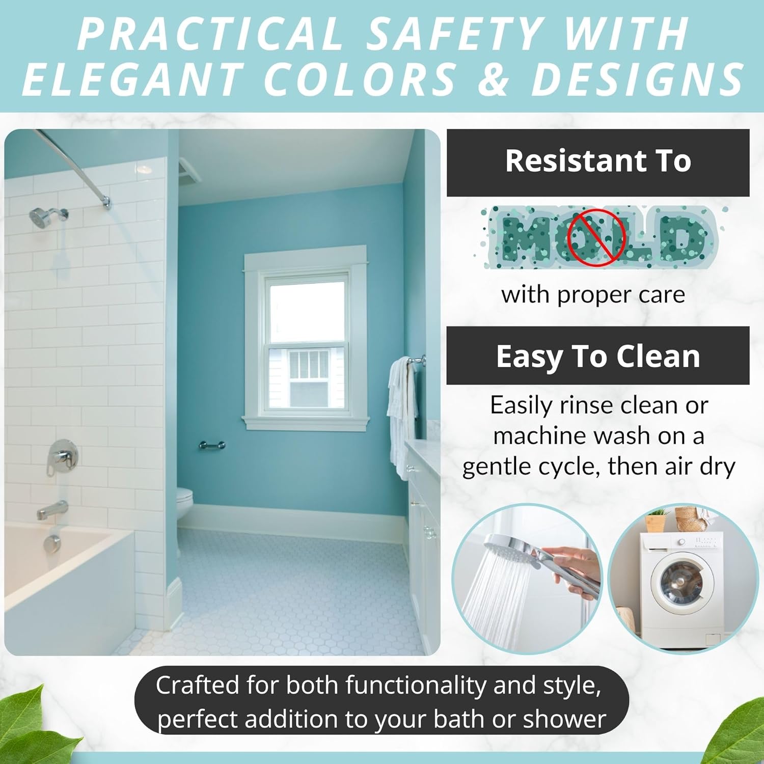 • Modern, Sturdy & Made To Last: Complement your stylish bath rugs décor with an eye-catching bath mat in many color variations. Place it in the washing machine, to keep it fresh, clean and hygienic for a long time!