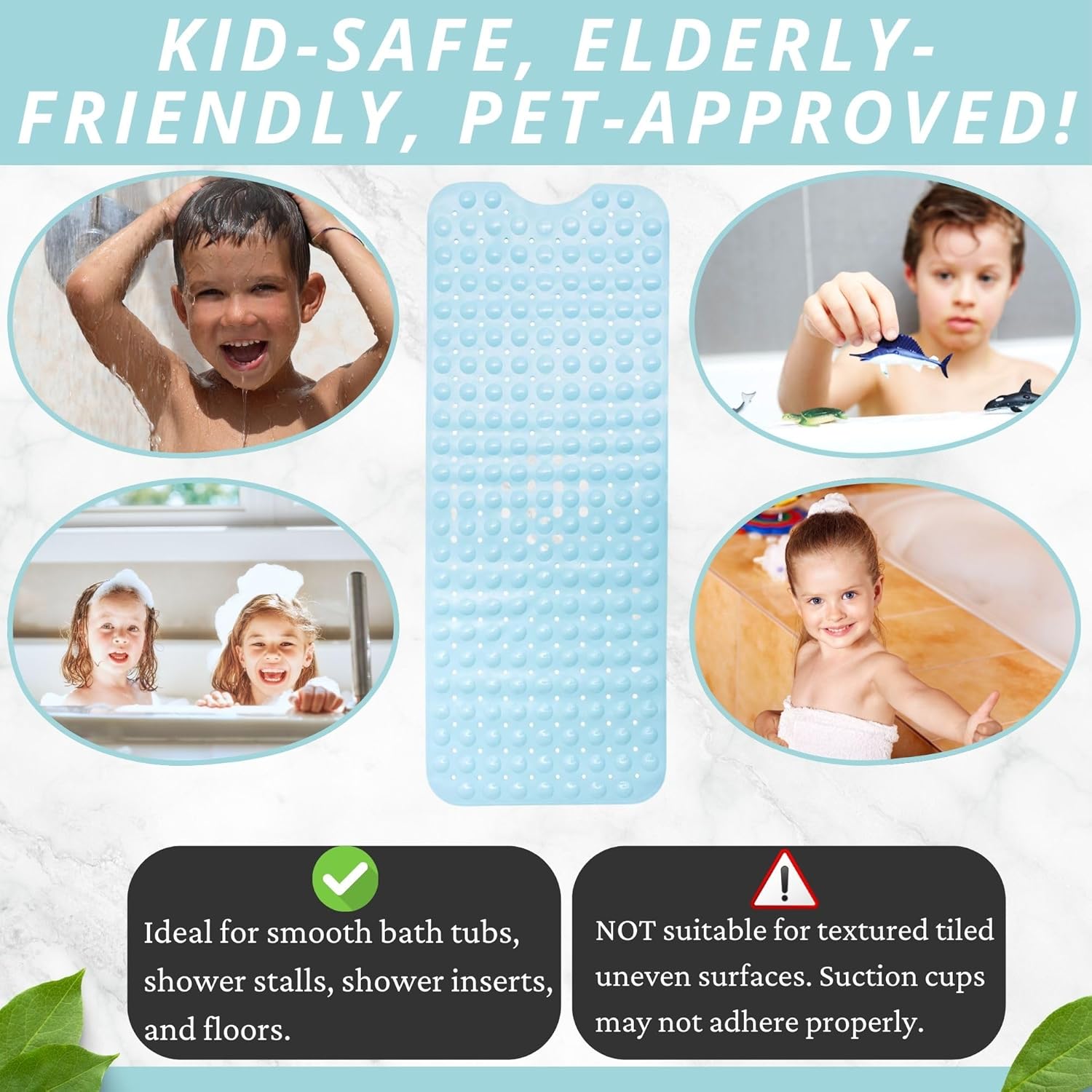• Great For The Elderly, The Babies & Young Children: Nonslip & generously sized, the Enkosi bath mat ensures the safe bathing & showering of your baby, toddler, as well as your elderly parents or grandparents.