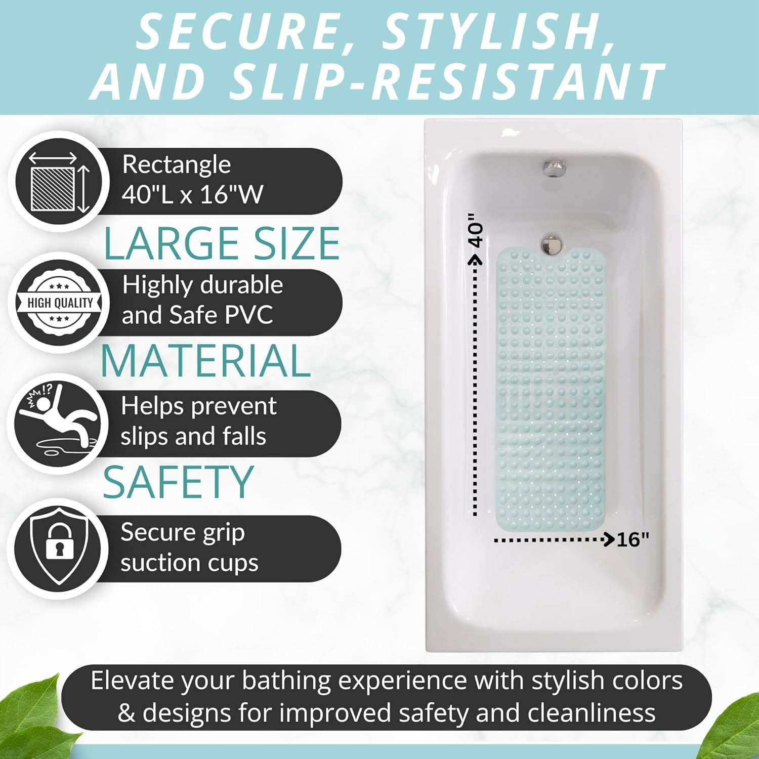 ENKOSI Bath Mat - Large Non Slip Bathtub & Shower Mat - Extra Long 40 x 16 Inch Bathroom Mats for Tub Nonslip Anti Slip Bathmats (40x16 Mint Green 1-Pack)