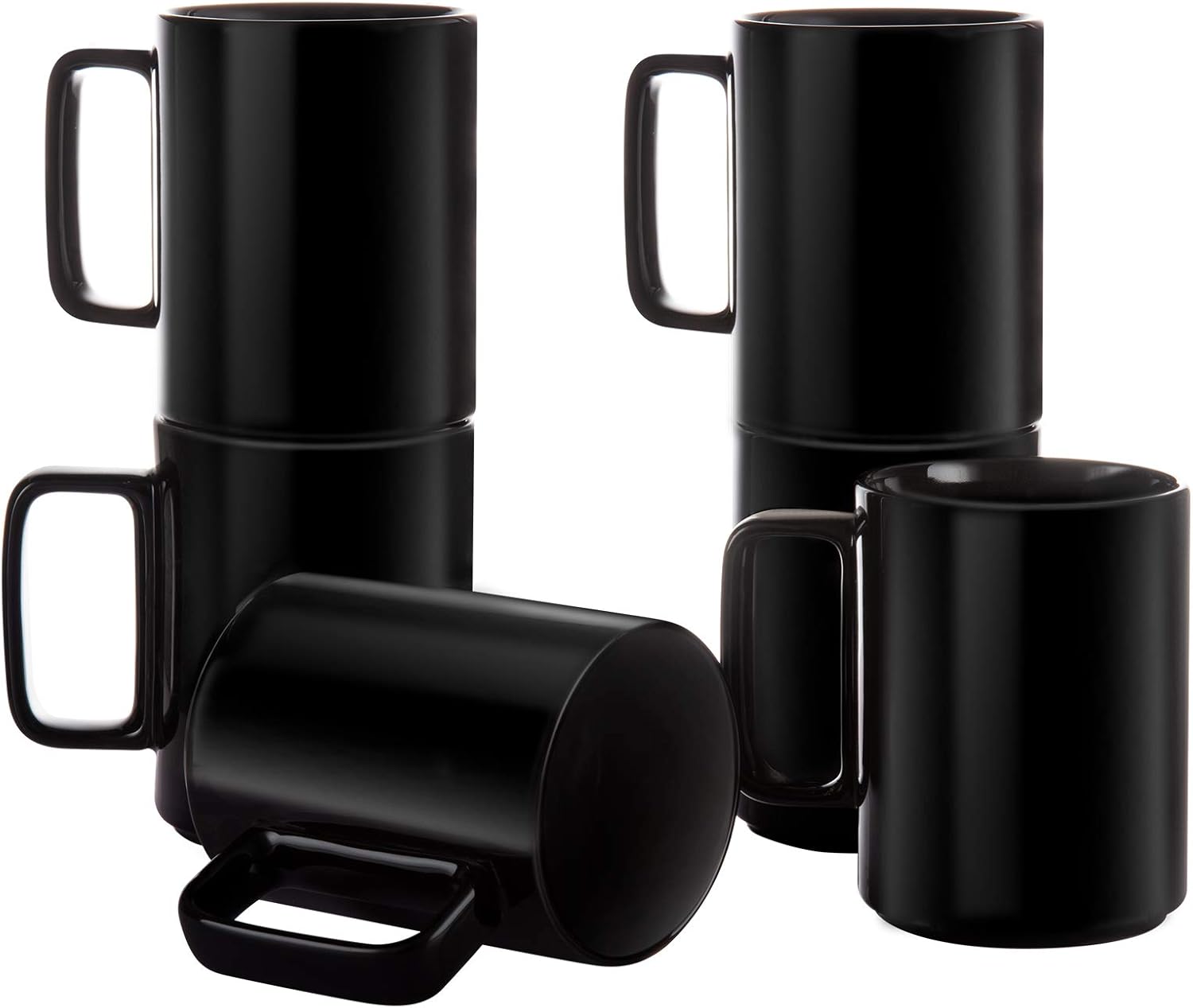 E-liu Porcelain Tea Mugs Coffee Mug Set, Large 15 Ounces Cups for Coffee, Tea, Cocoa, and Mulled Drinks, Set of 6, Black