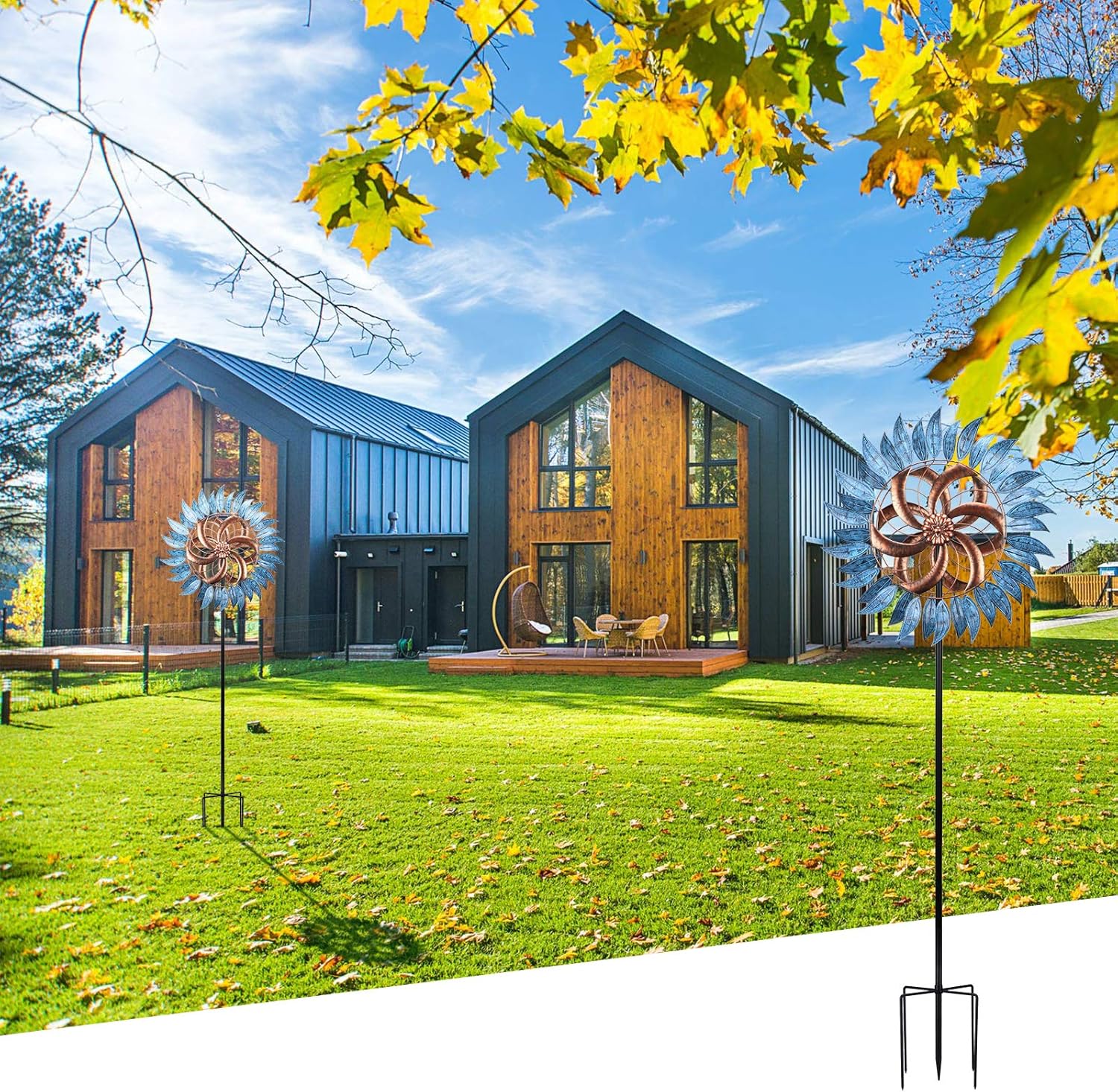 • A Vibrant Blue Brushed Coated Finish with a Mesmerizing Color Display - Built to withstand any weather. The solid ground stake and wind blades of our kinetic metal wind spinners come with a blue brushed coated finish that will stand out beautifully against a snowy landscape. A wonderful addition to any garden!