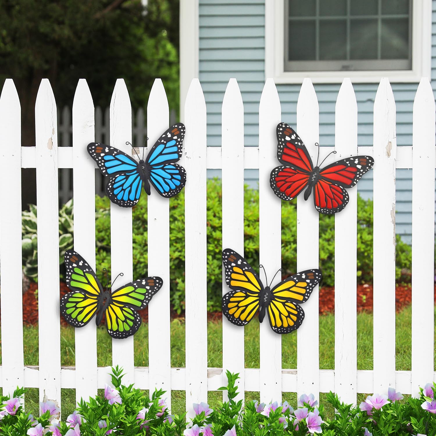 • Package Include: Set of 4 metal butterflies (blue, green, red, yellow). Butterfly size: 9.8''(L)x6.8''(W)