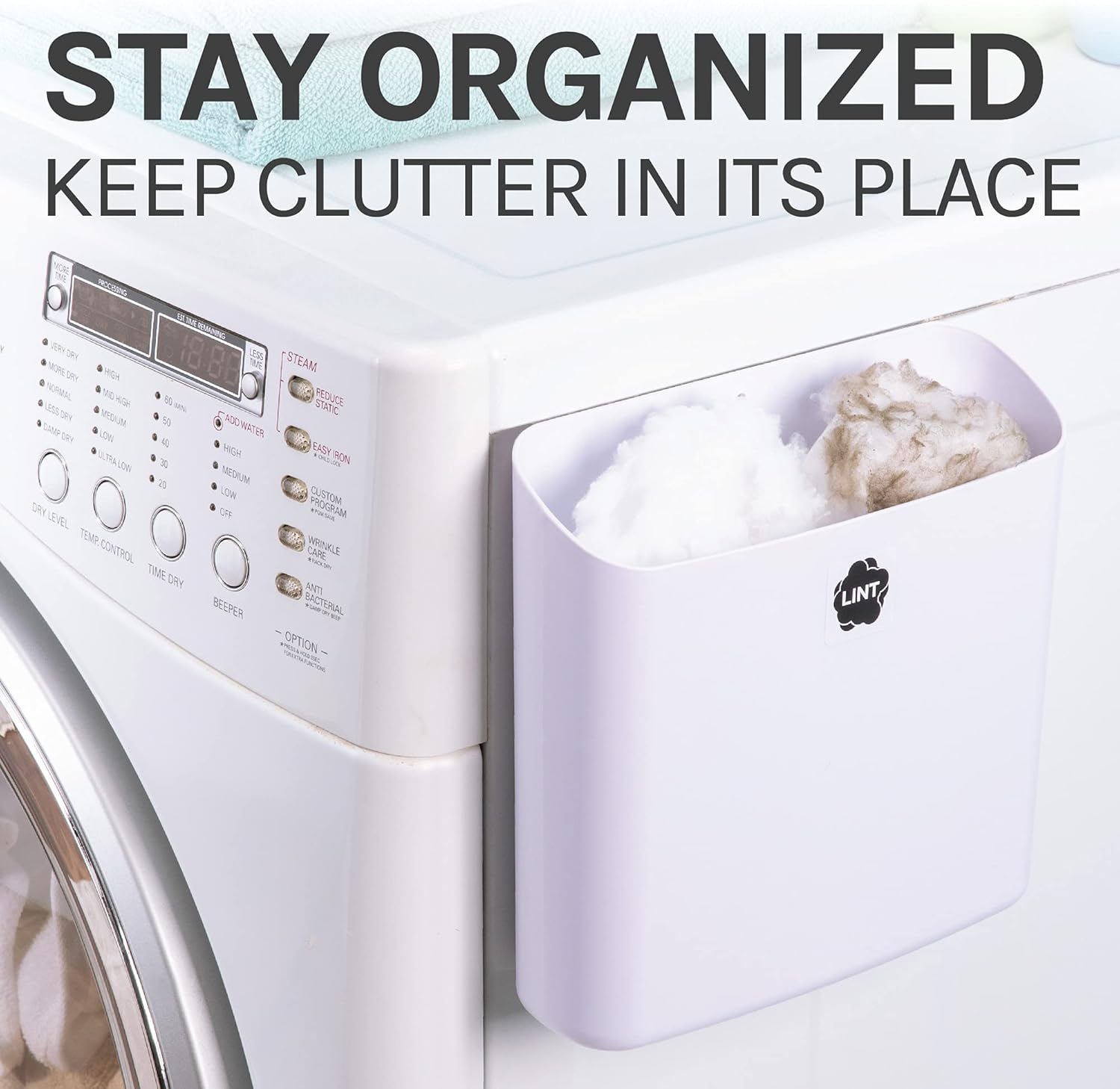 • These space saving multi-purpose bins are not just for lint! Attach it to your washer and use as a receptacle for your washable facemasks or mismatched socks. Load up with office and school supplies for your student and home office. These bins are the perfect spot to collect plastic grocery bags. Plus, you can use a plastic grocery bag in the large bin as a trash liner for lint and dryer sheets. Simply pull out, tie up and it's ready for the trash while keeping your lint bin looking clean!