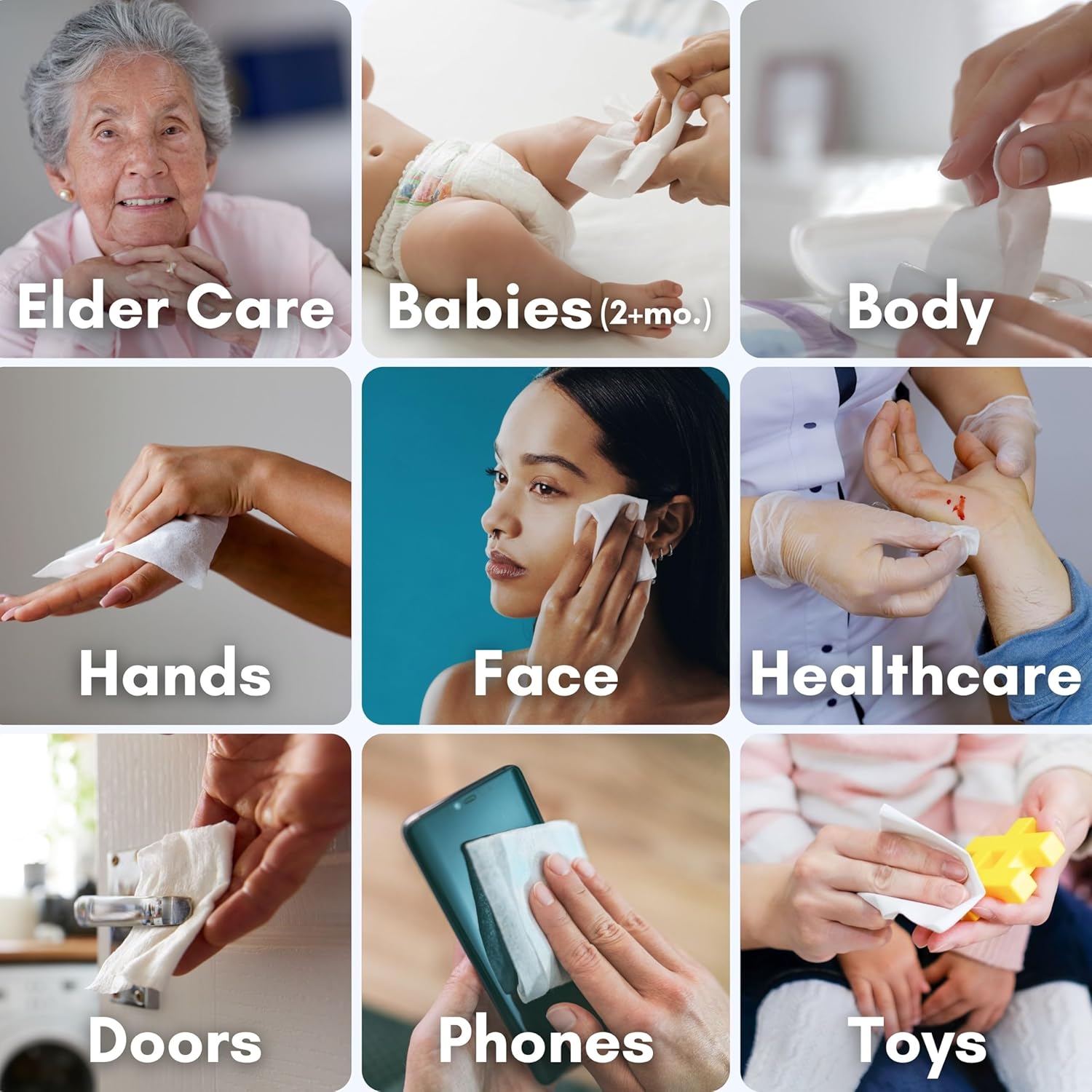 • Alcohol-Free: Our antibacterial cleaning cloths are free from rubbing alcohol, providing the perfect sanitizer and cleanser even for sensitive skin. Alcohol-Free, Paraben-free and cruelty-free.