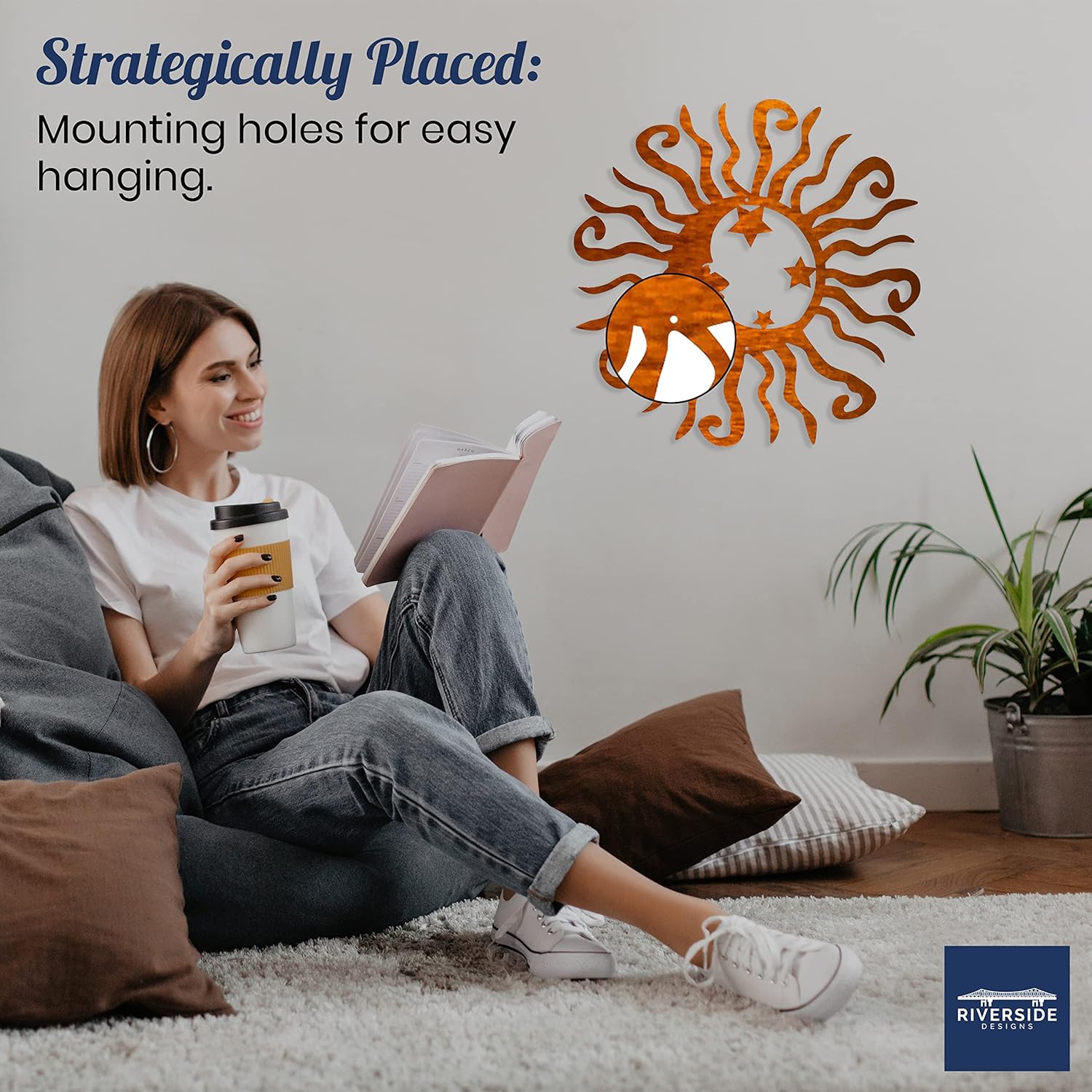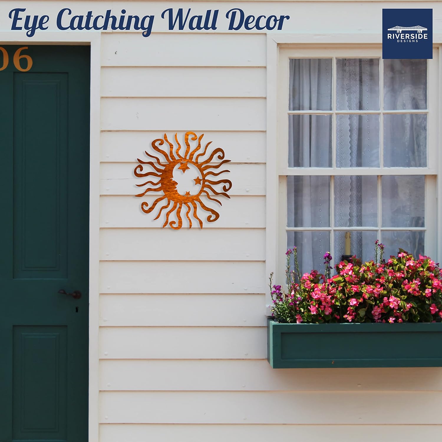 Riverside Designs Wacky Solar Moon Metal Wall Art Steel Outdoor Decor | Heavy-Duty and Waterproof | Made in USA (Copper, 12L x 12W)