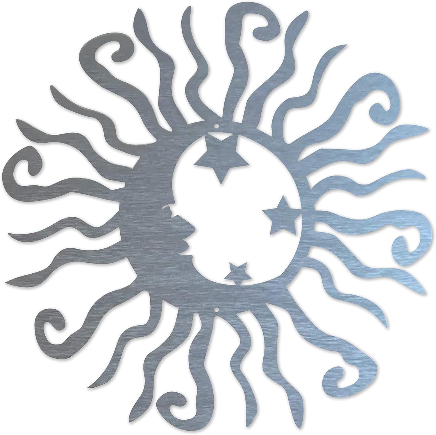 Riverside Designs Wacky Solar Moon Metal Wall Art Steel Outdoor Decor | Heavy-Duty and Waterproof | Made in USA (Silver, 24L x 24W)