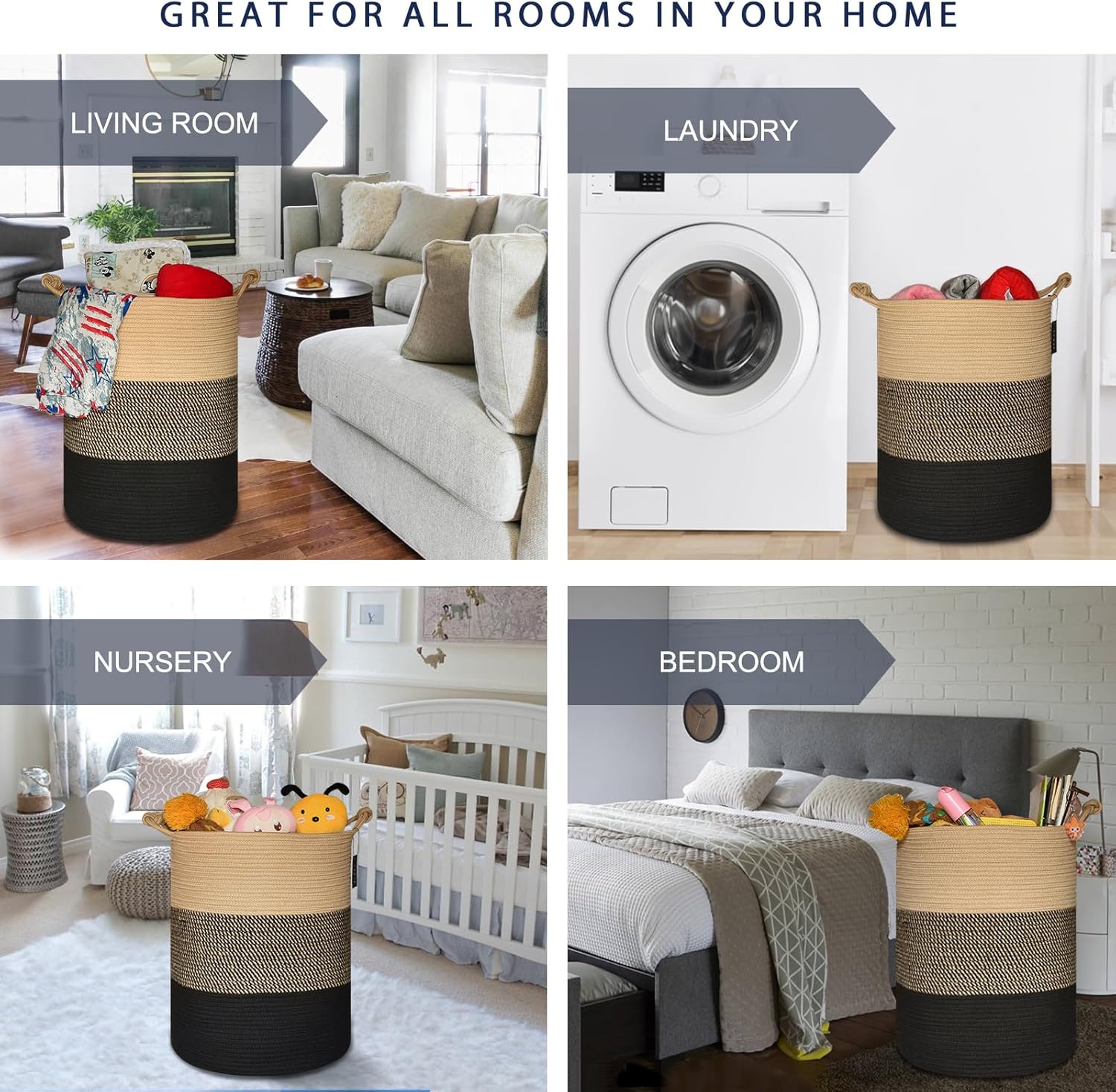 • 【Great Design】Durability handles, easy to move and take away. Neutral color design, healthy materials and multiuse design, will also be a unique home decor addition to your home. Perfect for your laundry room, bedroom, kids room, or living room.