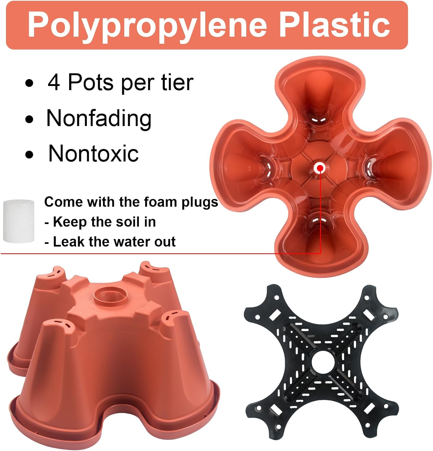 DUNCHATY Stackable Planter with Removable Wheels and Garden Tools, Garden Planting Tower Planters, Indoor Outdoor Gardening Pots - 5 Tier Vertical Planter