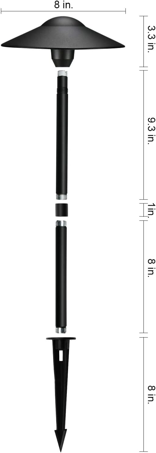 • EASY TO INSTALL – This landscape path lights with 8inch heavy-duty ABS ground stake and Two 9inch aluminium stems which can be connected easily. You can decide your path light's height by connecting one stem or two stems. Light Fixture pre-wired with UL listed direct burial Wire/Cable, you can connect the fixture easily. And extra cable connector required for installation(NOT INCLUDED with this fixture).