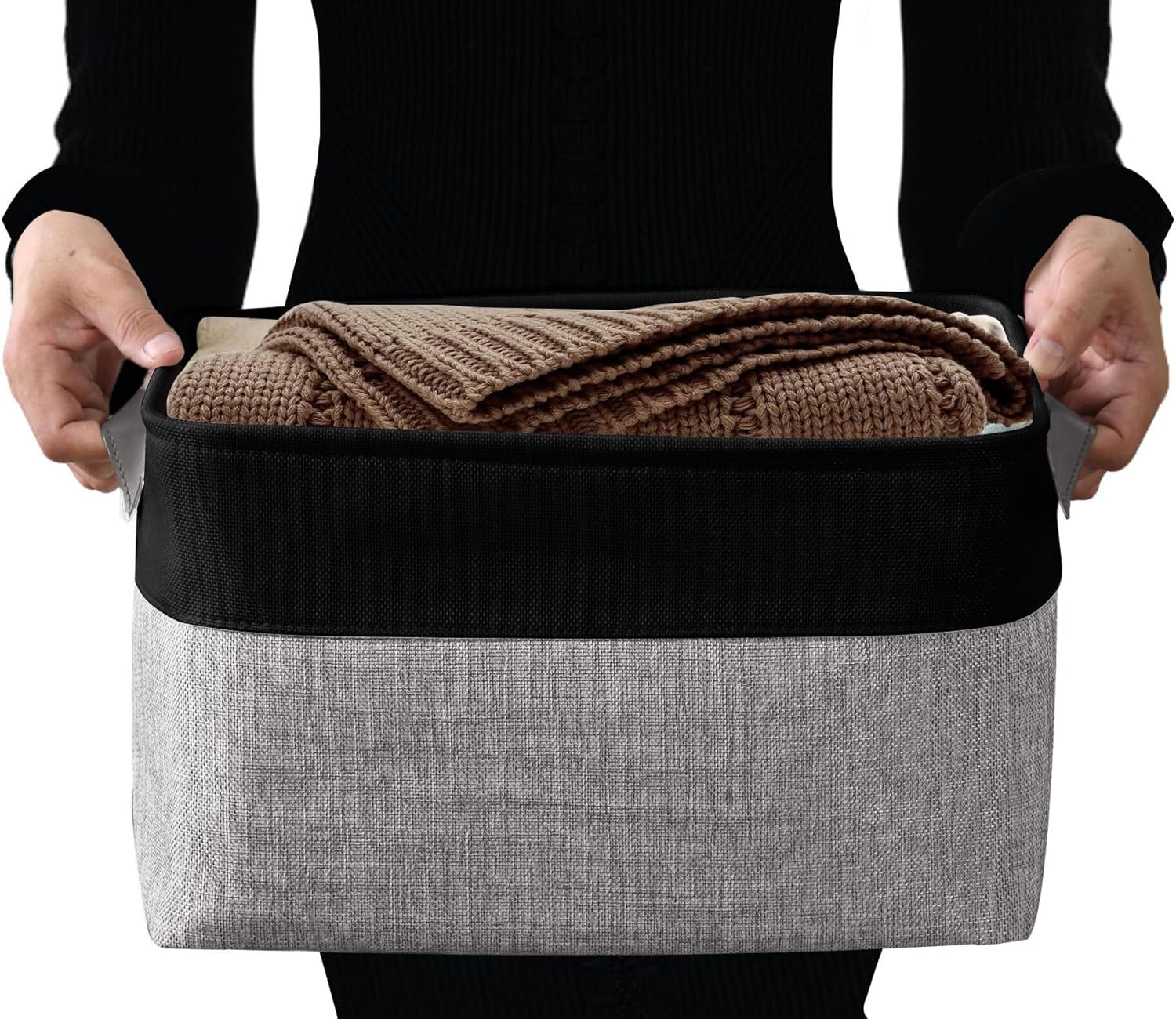 DECOMOMO Storage Baskets for Shelves - Fabric Closet Organizers and Storage Bins, Perfect Baskets for Organizing Closet Toys Nursery (Grey and Black, Large - 4 Pack)