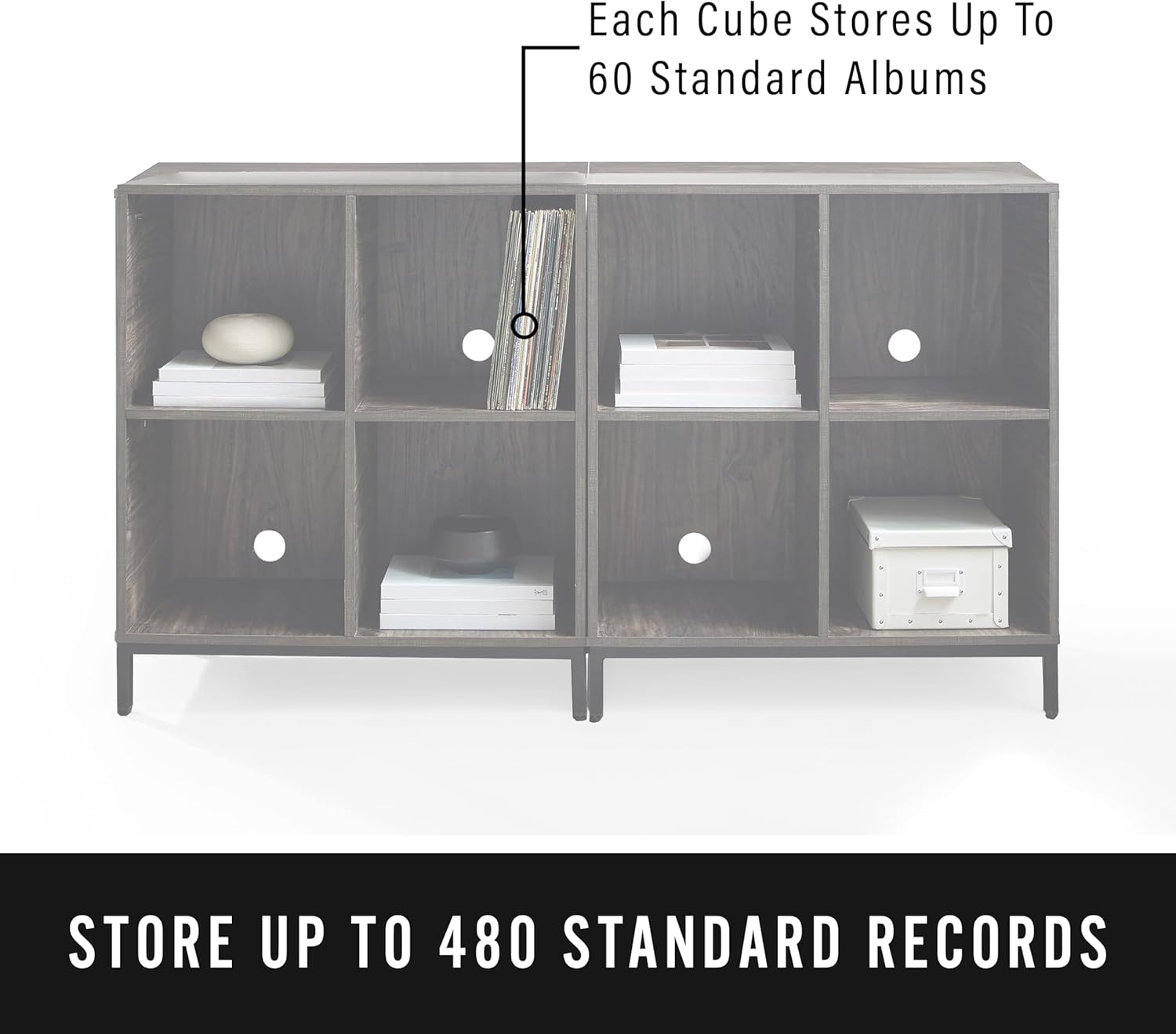 • OPTIMAL RECORD STORAGE: Each cube shelf holds approximately 60 vinyl records with 20-lb weight limits. The top of the bookcase can be a record player stand, making it a perfect solution for music enthusiasts.